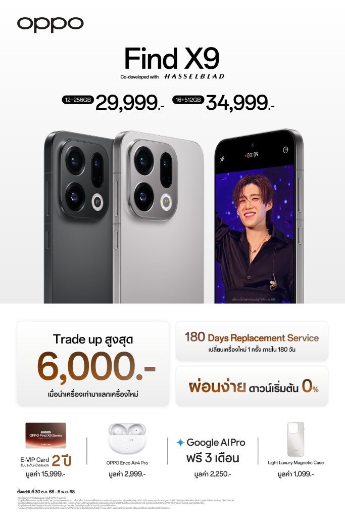 สำหรับผู้อ่านที่ทำการจอง OPPO Find X9 (30 ต.ค. 68 – 6 พ.ย. 68) รับของแถมและสิทธิพิเศษหลายรายการ ได้แก่