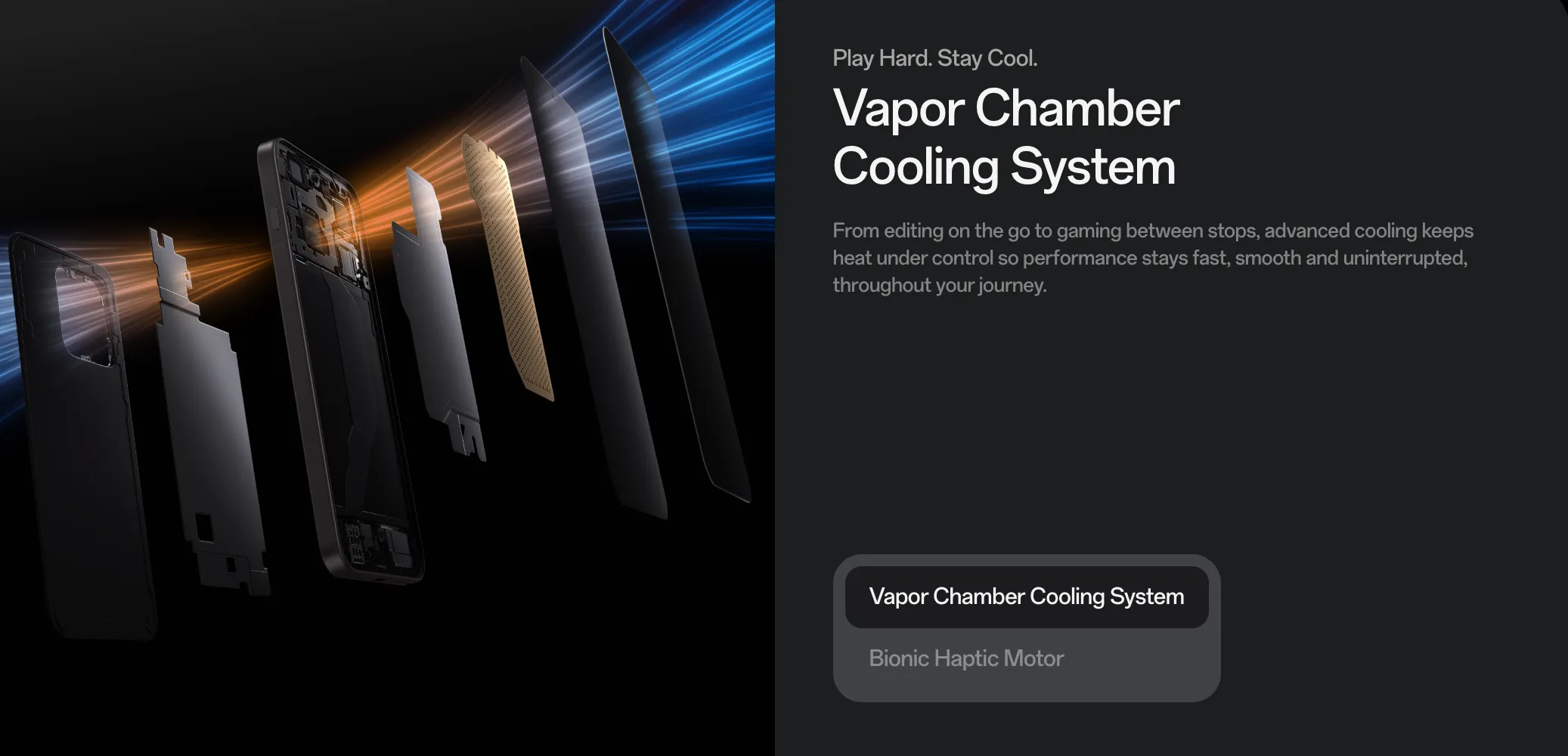 ความเร็วการชาร์จ 80W SUPERVOOC จับคู่กับระบบระบายความร้อน Vapor Chamber Cooling System ทำให้ประสิทธิภาพการทำงานเป็นไปอย่างราบรื่น รวดเร็วและไม่สะดุด