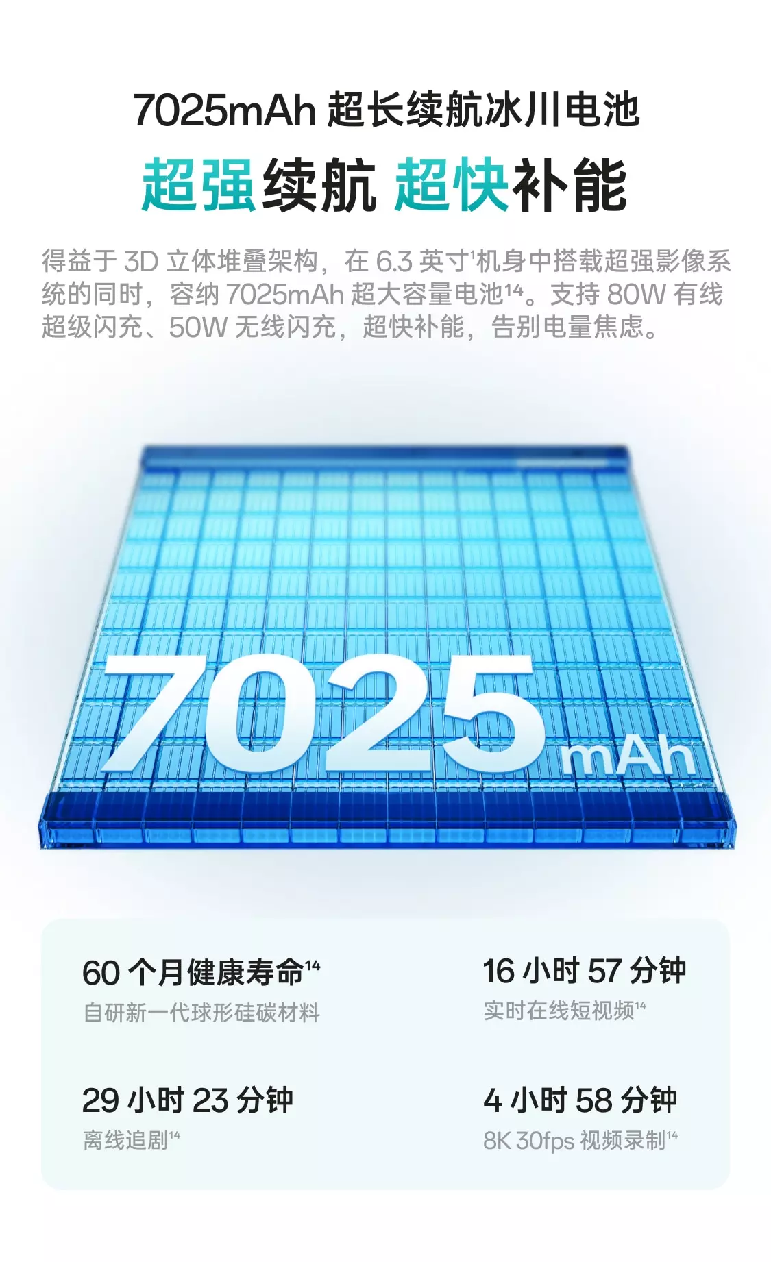 แบตเตอรี่ความจุ 7,025mAh รองรับการใช้งานที่ยาวนาน ชาร์จไวสูงสุด 80W SuperVOOC และชาร์จไร้สาย Wireless Flash Charge 50W