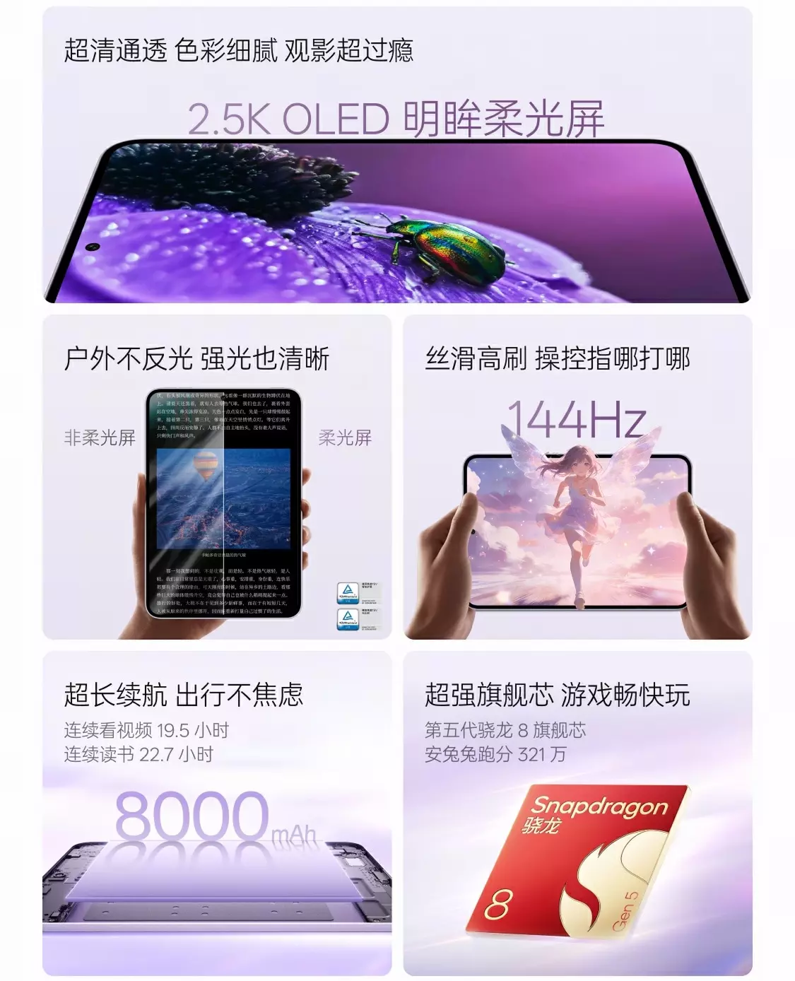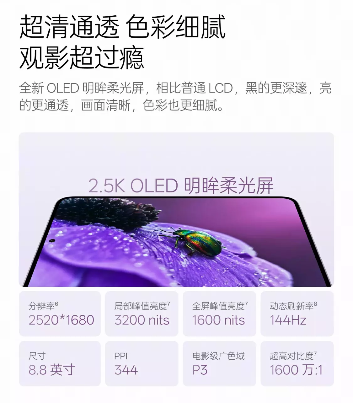 จอแสดงผล OPPO Pad Mini มีขนาด 8.8 นิ้ว OLED รีเฟรชเรท 144Hz ภาพคมชัดพิเศษ 2.5K สีสันสดใสดูเป็นธรรมชาติ ใช้งานกลางแจ้งได้สบาย เพราะหน้าจอมีความสว่างสูงสุด 3,200 นิต