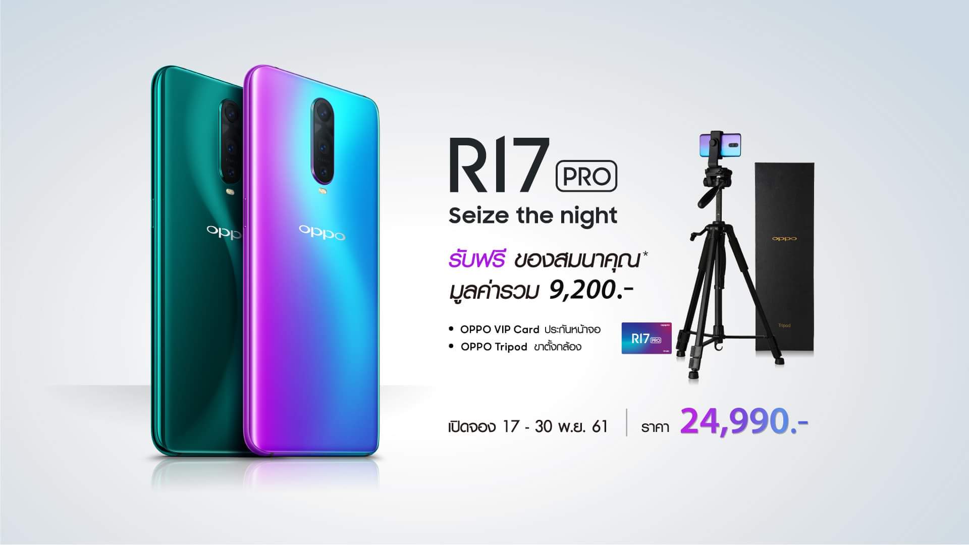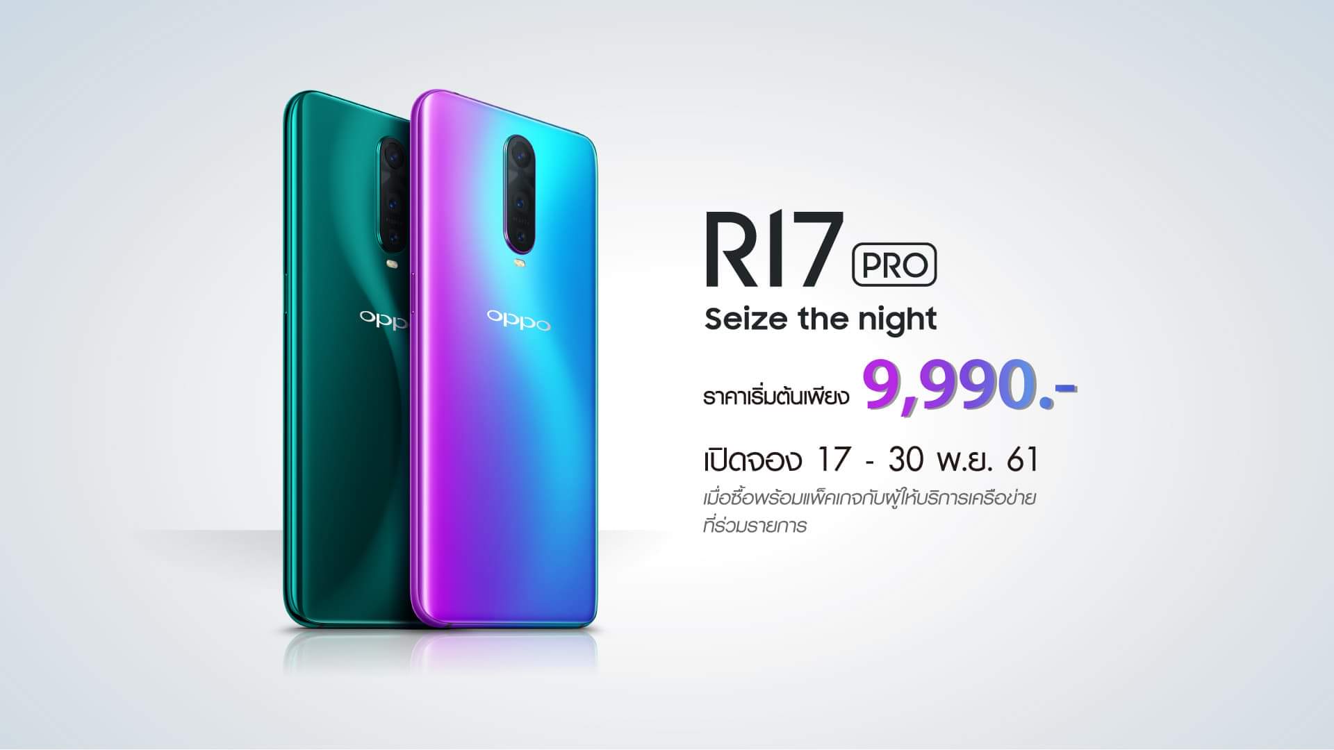 OPPO R17 Pro รุ่นที่วางขายในไทยนั้นจะเป็นตัวท็อปสุด RAM 8GB ROM 128GB โดยมีราคาเปิดตัวอยู่ที่ 24,990 บาท จองกับผู้ให้บริการเครือข่ายต่างๆ มีราคาพิเศษ พร้อมแพ็คเกจ เริ่มต้นที่ 9,900 บาทครับ อันนี้แล้วแต่โปร และ เครือข่ายนะ
