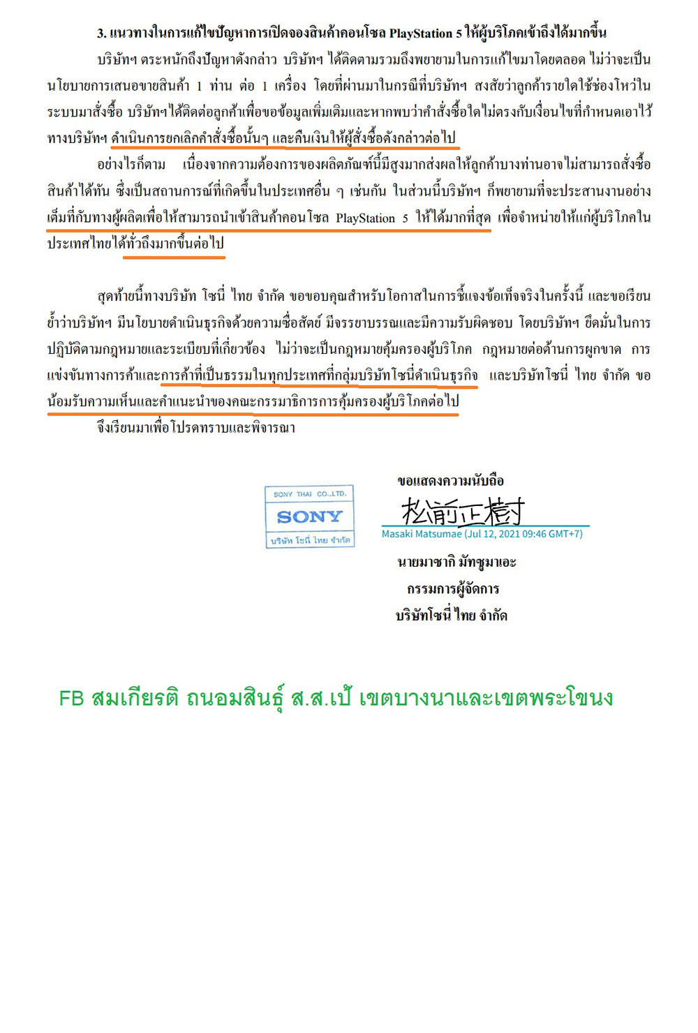 - บริษัทฯ ไม่ได้ชี้แจงถึงจำนวน PS5 ที่เปิดจองในแต่ละรอบตามที่มีการร้องขอ