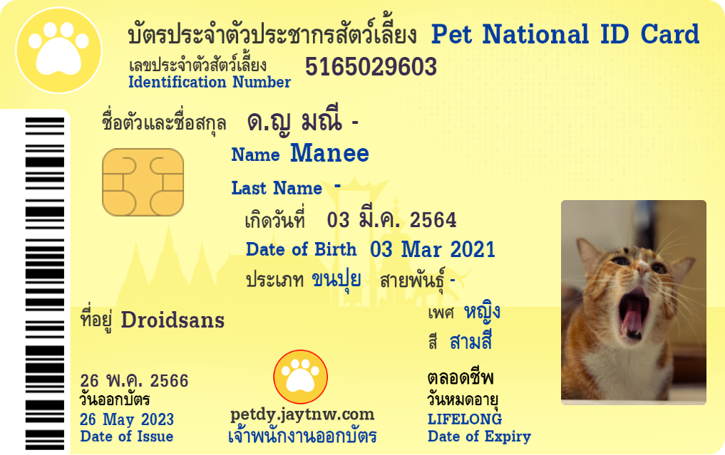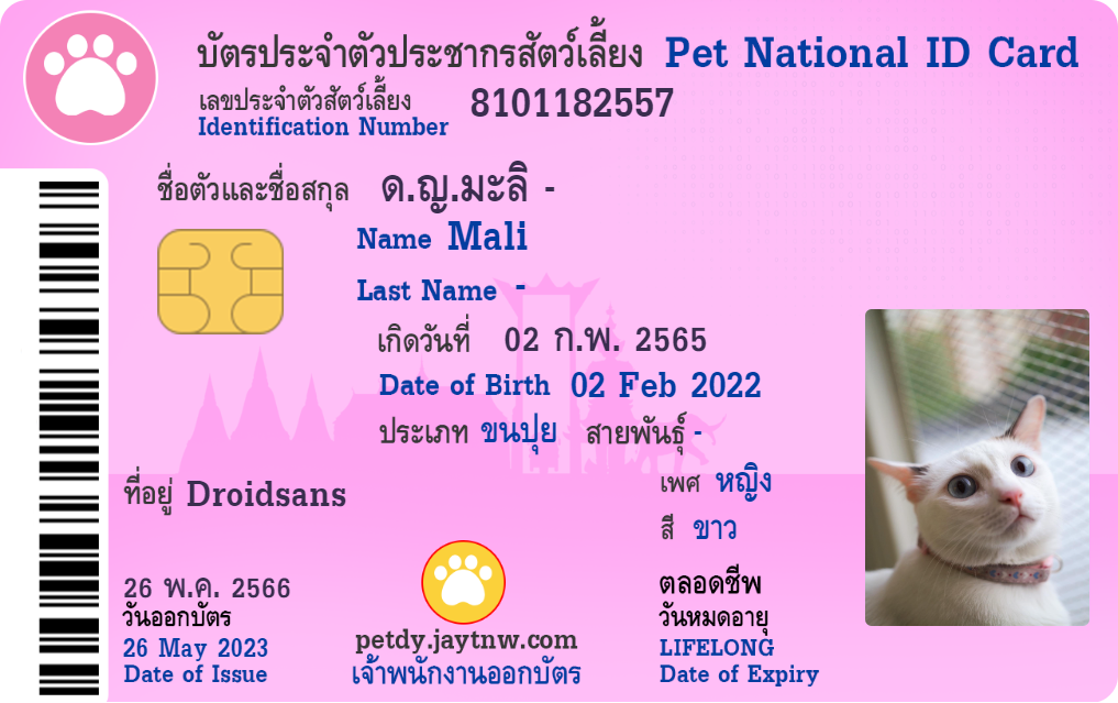 ซึ่งข้อมูลที่เราจะกรอกให้สัตว์เลี้ยงเพื่อทำบัตรประชาชนสัตว์นั้นก็จะมีให้ใส่ทั้งด้านหน้าและด้านหลัง