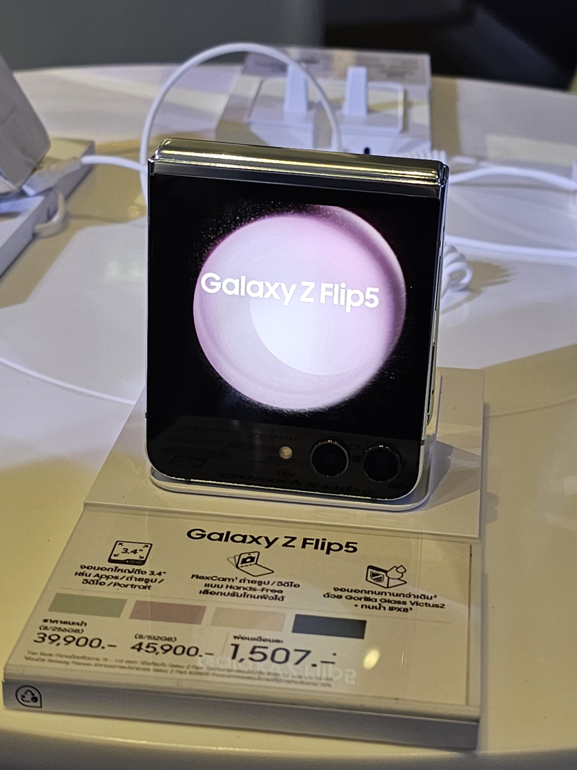 - สำหรับคนที่ลงทะเบียนแสดงความสนใจและสั่งซื้อล่วงหน้าผ่าน AIS จะได้รับเครื่องในวันที่ 7 สิงหาคม 2566 เป็นต้นไป และสำหรับลูกค้าที่ลงทะเบียนแสดงความสนใจพร้อมสั่งซื้อล่วงหน้า Galaxy Z Flip5 โดยเลือกรับที่ AIS Shop สาขา Siam Square วันที่ 7 สิงหาคม 2566 ตั้งแต่ 8.00 น.เป็นต้นไป รับฟรี Flipsuit Case ลาย Exclusive (เพียง 60 ท่านแรกเท่านั้น) พร้อมพบกับคุณอิ้งค์ วรันธร เวลา 17.00 น.
