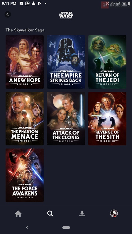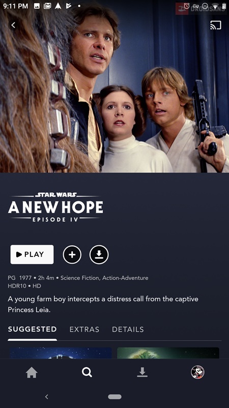 ส่วนของการรับชมนั้นก็มี่ตั้งแต่การดูผ่านอุปกรณ์ต่างๆ เช่นมือถือ แท็บเล็ต หรือจะแคสต์ขึ้นไปดูบนทีวีก็ได้ ตัวหนังมีรายละเอียดบอกหมดว่ามีความละเอียดระดับไหน UHD, HD และมีการแสดงผลแบบ HDR10 (เท่าที่ลองกดๆ ดู Star Wars บางภาคถูกจับมา Re-Master เป็น UHD และรองรับ HDR ด้วย) บางเรื่องเปิดให้สามารถโหลดเก็บมาดูบนอุปกรณ์ได้