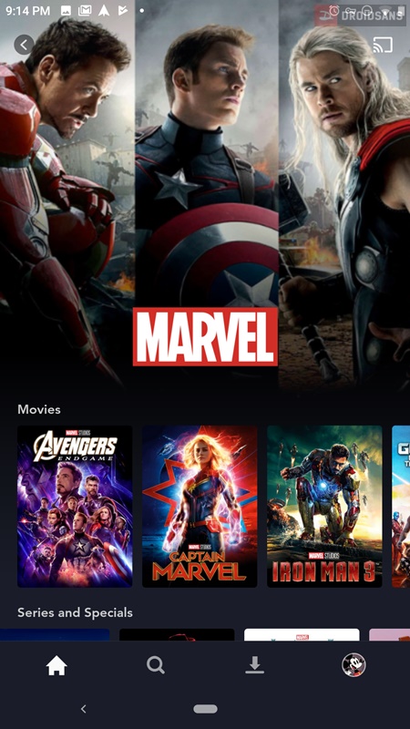 สำหรับ UI และการใช้งานนั้นไม่มีอะไรซับซ้อน เพาะเข้ามาหน้าโฮมก็จะแอบรู้สึกว่าตอนนี้เปิด Netflix อยู่หรือเปล่า เพราะมีความคล้ายกันแบบสุดๆ แต่ของดิสนีย์พลัสจะมีสตูดิโอค่ายต่างๆ ให้เลือกกดแยกไปรายชื่อหนังหรือซีรี่ส์ได้เลย โดยจะมีทั้งหมด 5 ค่าย