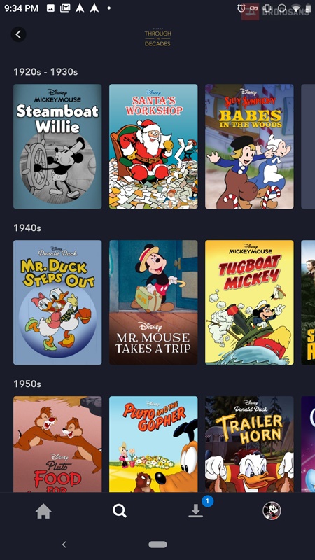 รวมถึงพวกการ์ตูนเก่าๆ คลาสสิคของมิกกี้เมาส์และผองเพื่อนก็มีมาเพียบเลยทีเดียว เช่นเดียวกับฝั่งของ Marvel มีการ์ตูน Spiderman สมัยลายเส้นโบราณๆ มากับเค้าด้วย ส่วนหนังชุด Avenger และภาคแยกต่างๆ นั้นก็ยังมีไม่ครบ บางเรื่องยังติดสัญญากับ Netflix อยู่ เลยยังเอามาลงช่องตัวเองไม่ได้