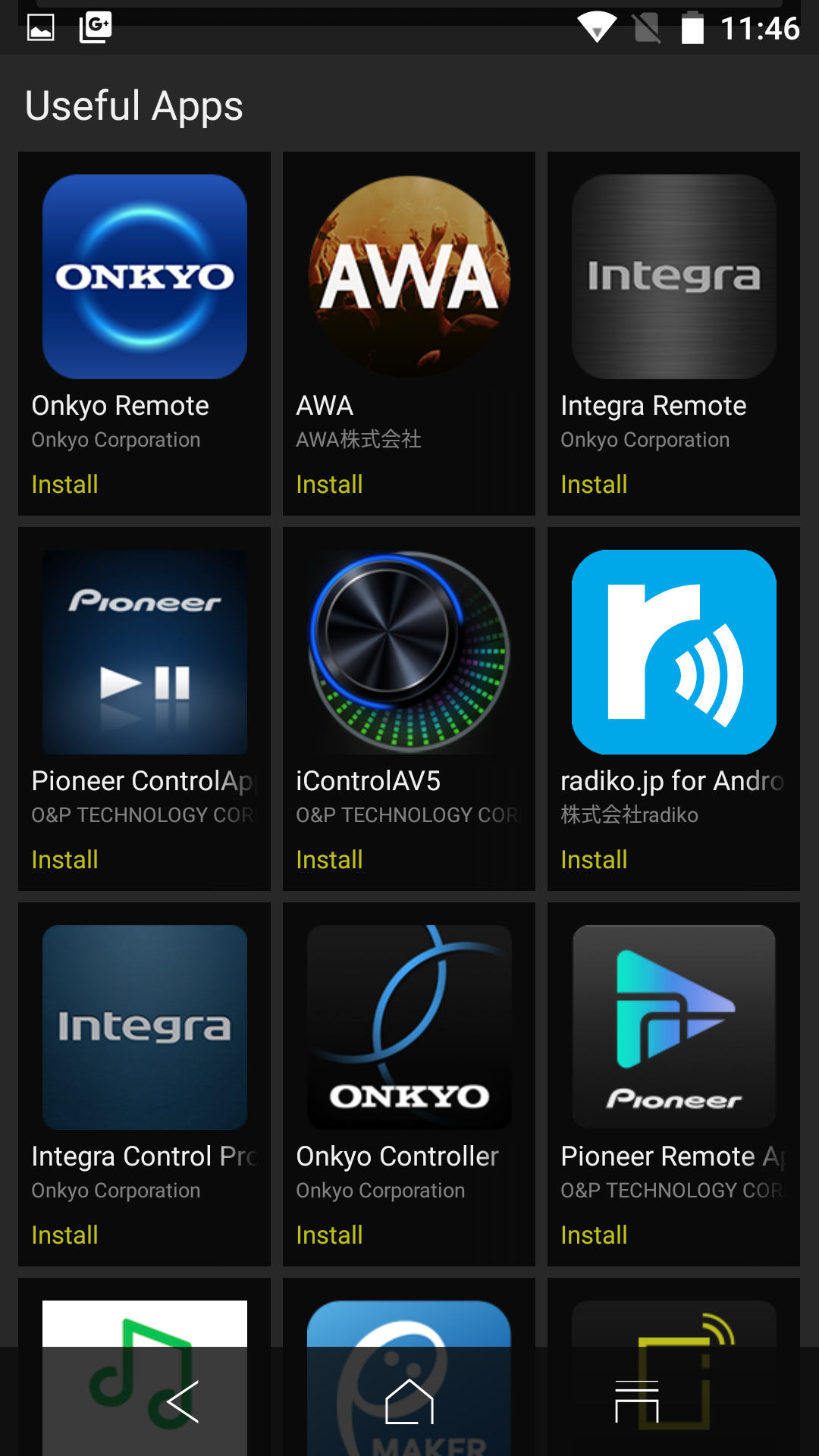 อีกหนึ่งแอปแถมที่ทาง Onkyo ใส่มาให้ก็คือ Useful Apps ที่เป็นแอปแสดงรายการเพลงใหม่จากเว็บไซต์ e-onkyo เว็บขายเพลงออนไลน์ของทาง Onkyo ที่มีเพลง High-Resolution ขายอยู่ค่อนข้างเยอะครับ โดยใน Useful Apps ก็มีแสดงแบ่งหมวดหมู่เพลงต่างๆ กันออกไป พอเลื่อนลงมาอีกหน่อยก็จะมีแนะนำแอปต่างๆ โดยรวมก็จะเป็นแอปสำหรับด้านการฟังเพลงหรือควบคุมเครื่องเสียงนี่แหละครับ