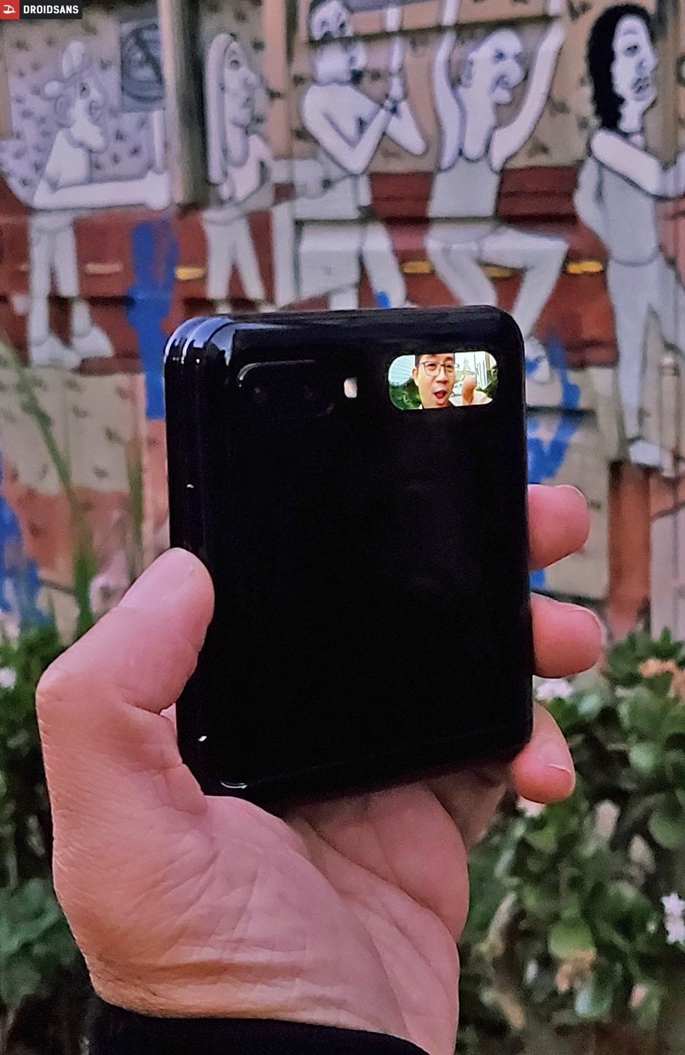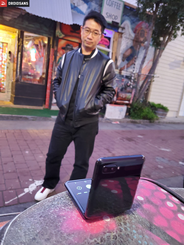 ด้วยการที่ Z Flip มันสามารถกางจอออกมาครึ่งทางหรือ 90 องศาไปจนถึงราวๆ 120 องศา แล้วสามารถใช้งานได้นั้นทำให้เราสามารถใช้ฝาด้านล่างเป็นแท่นวาง หรือขาตั้งกล้องได้เลย