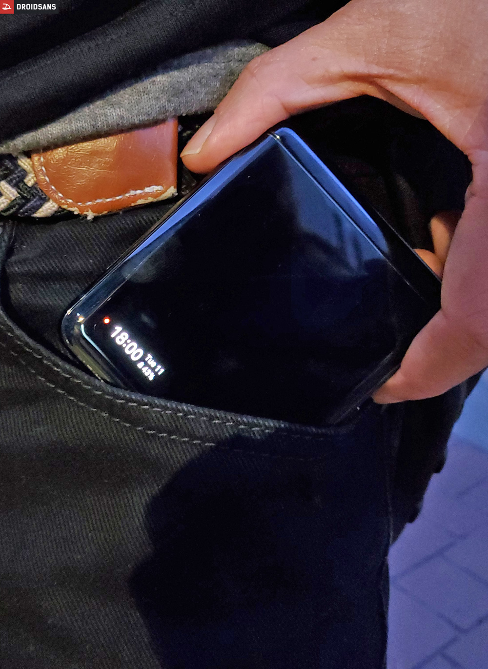 ตอนแรกที่ได้เห็นตัวเลขขนาดเครื่องของ Z Flip ก็แอบคิดว่ามันจะหนาและใหญ่พอๆ กับ Galaxy Fold ที่ผมใช้อยู่แน่ๆ แต่พอได้สัมผัสของจริง หยิบมาหมุนๆ พลิกๆ ในมือไปสักพักก็พบว่า.. ในความรู้สึกจับแล้วมันเล็กกว่ามากๆ คือทำเอา Fold ดูหนาและเทอะทะไปเลย