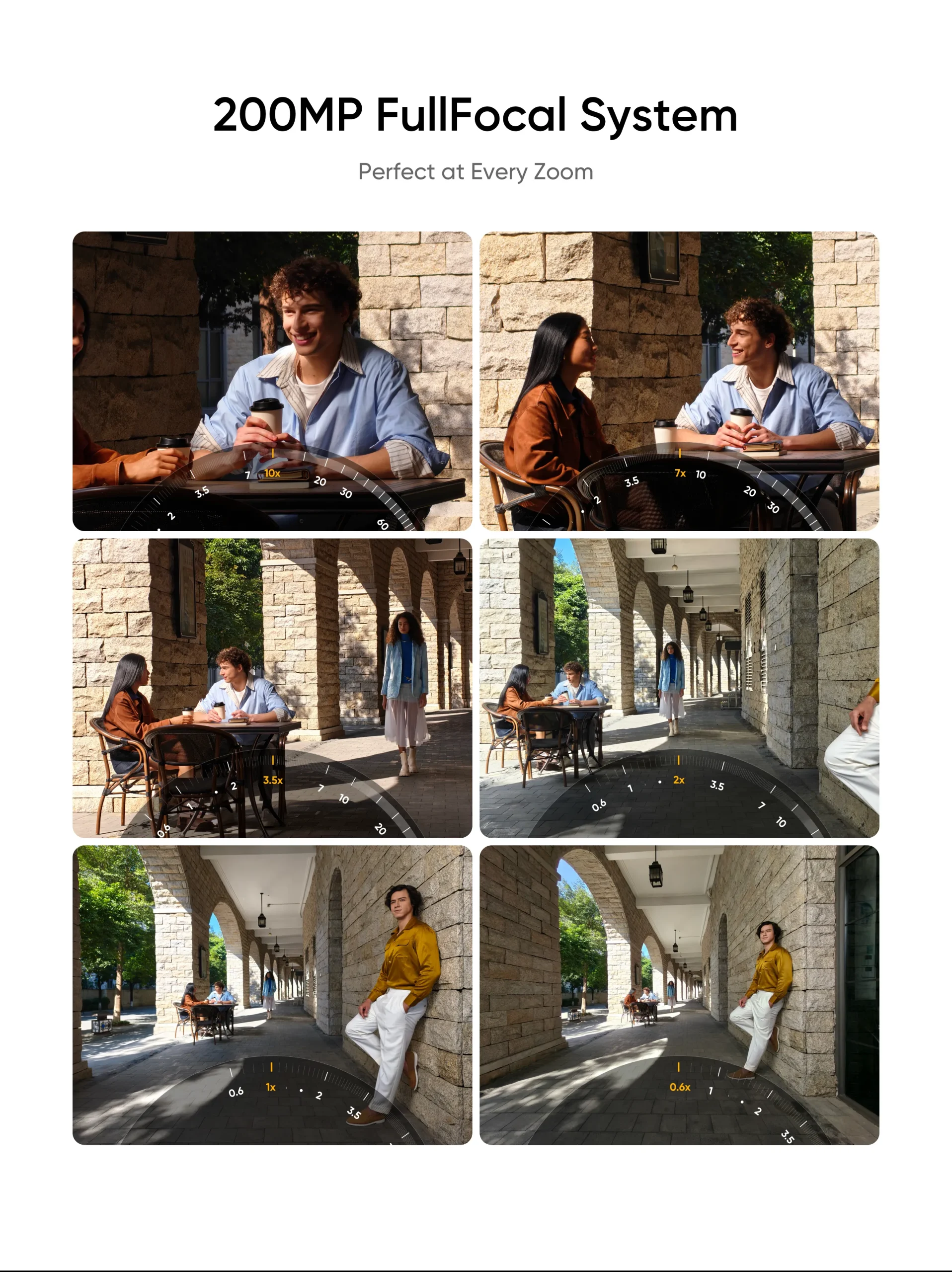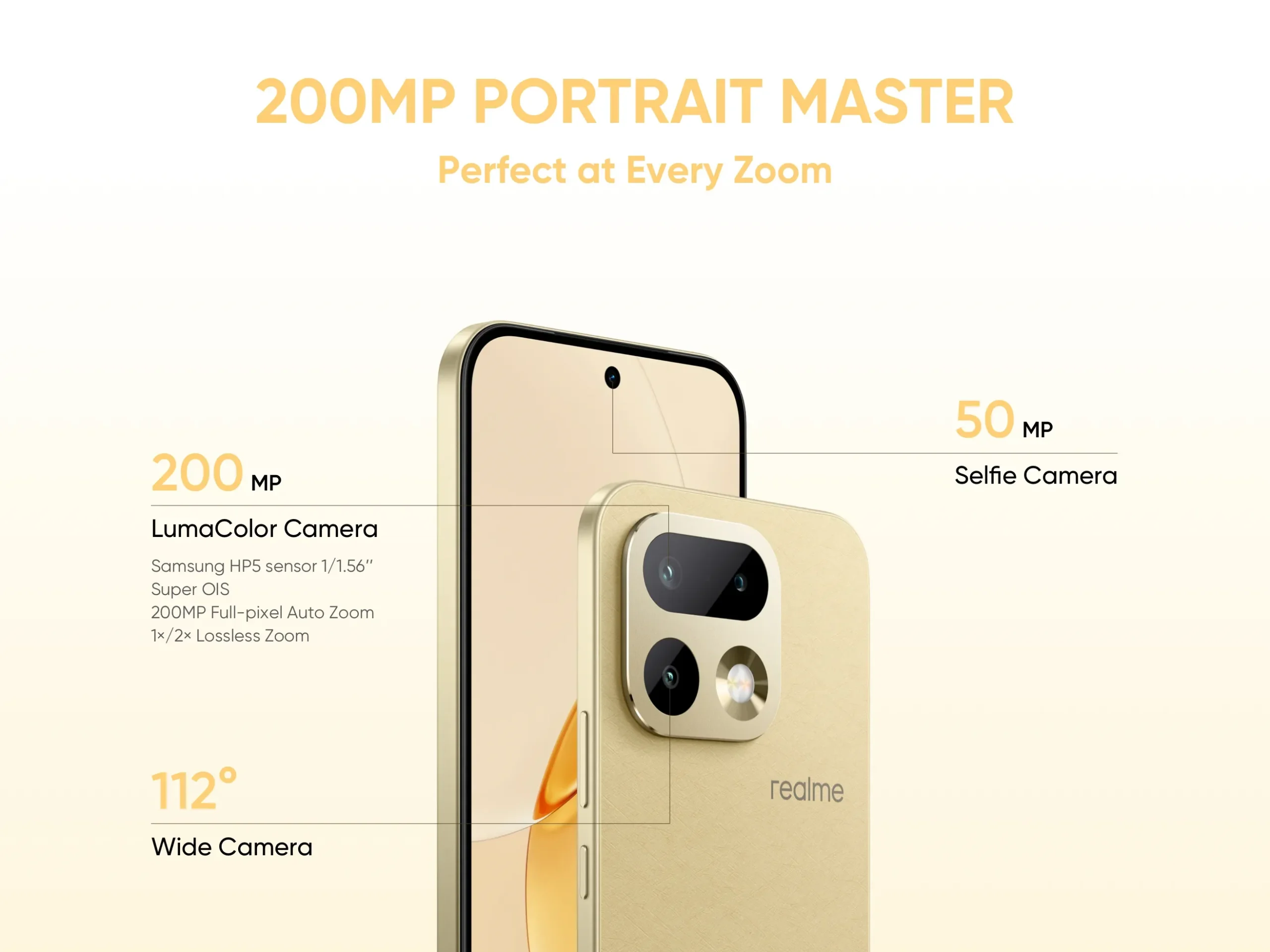 realme 16 Pro+ 5G มาพร้อมกับกล้องหลัก 200MP เซนเซอร์ ISOCELL HP5 ขนาด 1/1.56 นิ้ว จับคู่กับรูรับแสง f/1.8 รองรับการซูมแบบไม่เสียรายละเอียด (Lossless Zoom) ที่ระยะ 2 เท่า