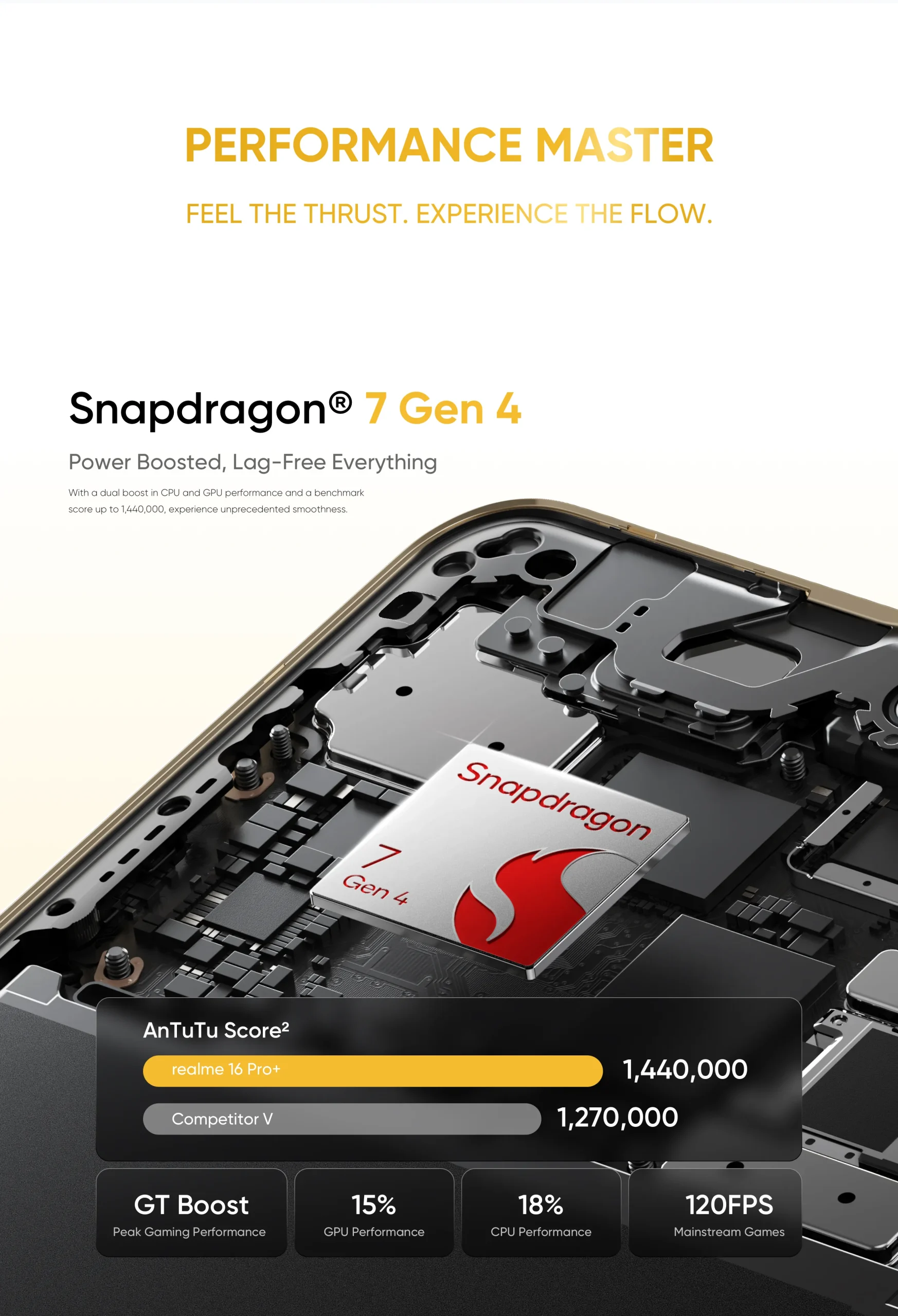 | ประสิทธิภาพ | ชิปเซต | MediaTek Dimensity 7300 Max | Snapdragon 7 Gen 4 |