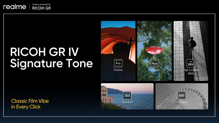 realme ระบุว่า realme GT 8 Pro จะเป็นสมาร์ทโฟนรุ่นแรกของทางบริษัทที่ได้ใช้ซอฟต์แวร์กล้องซึ่งพัฒนาร่วมกับทาง RICOH มายาวนานกว่า 4 ปี โดยจะมาพร้อมกับโปรไฟล์โทนภาพถึง 5 แบบ ที่ได้แรงบันดาลใจมาจากกล้อง RICOH GR ได้แก่ Positive Film, Negative Film, High Contrast Black & White, Standard และ Black & White