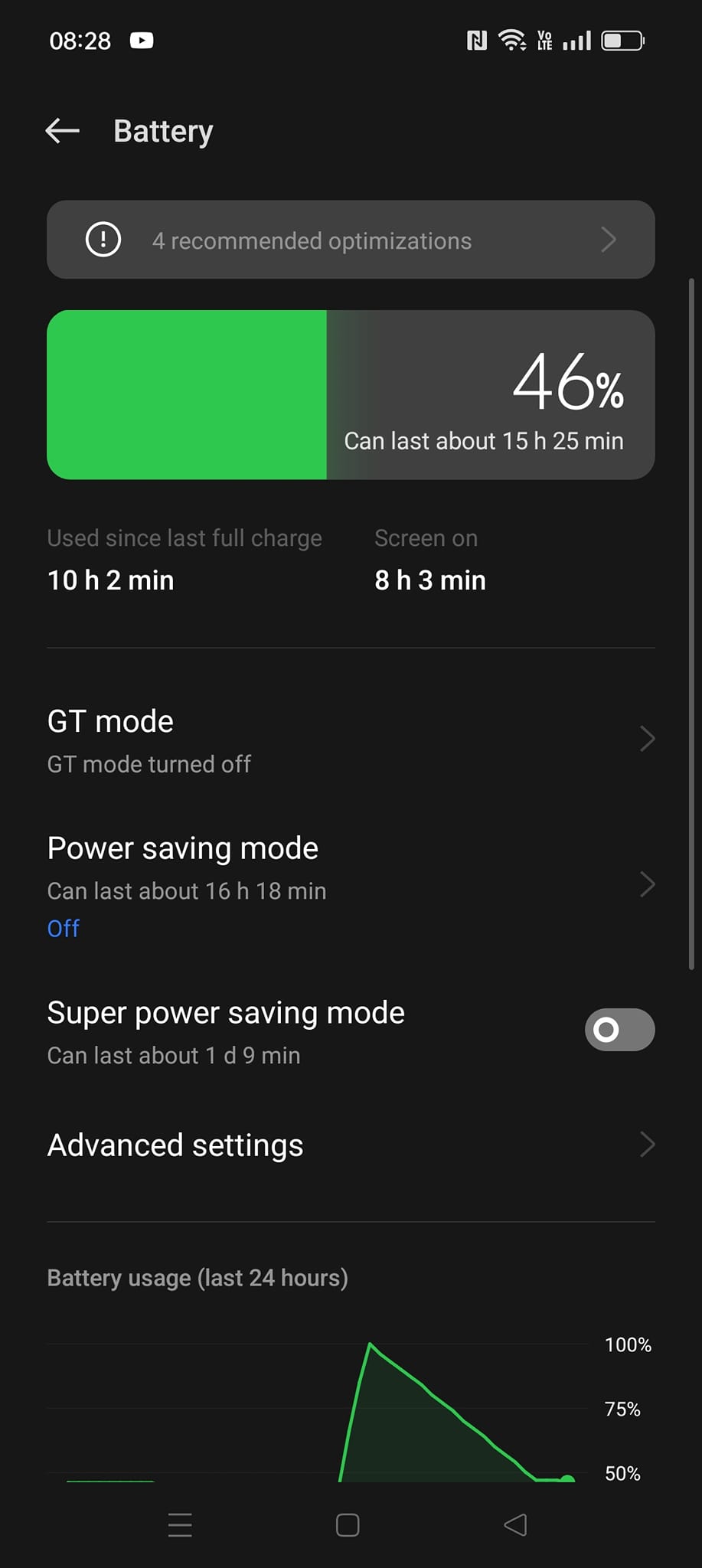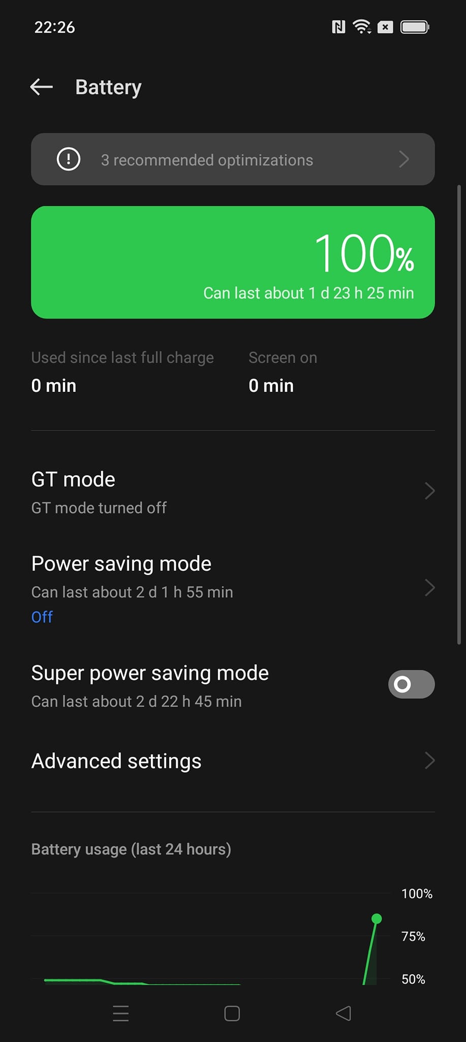 แบตเตอรี่ของ realme GT NEO 3 ให้มาแบบเต็ม ๆ ถึง 5000 mAh ซึ่งจากการใช้งานจริงแต่ละวัน ใช้เน็ต 5G บ้างเวลาอยู่ข้างนอก เวลาอยู่ในออฟฟิศหรืออยู่บ้านก็ใช้ WiFi เล่นเน็ต ดูคลิป YouTube บ้าง เล่นเกมประมาณ 15 นาที ถ่ายวิดีโอ ถ่ายรูปนิด ๆ หน่อย ๆ แชทผ่าน Messenger ทั้งวัน กลับบ้านค่ำ ๆ เหลือแบตเตอรี่เกิน 40% ถือว่าอึดใช้ได้เลย ถ้าไม่ได้เล่นเกมหรือดูคลิปยาว ๆ มากมาย น่าจะเหลือเกิน 50% ลากยาวไปอีกวันพอได้อยู่