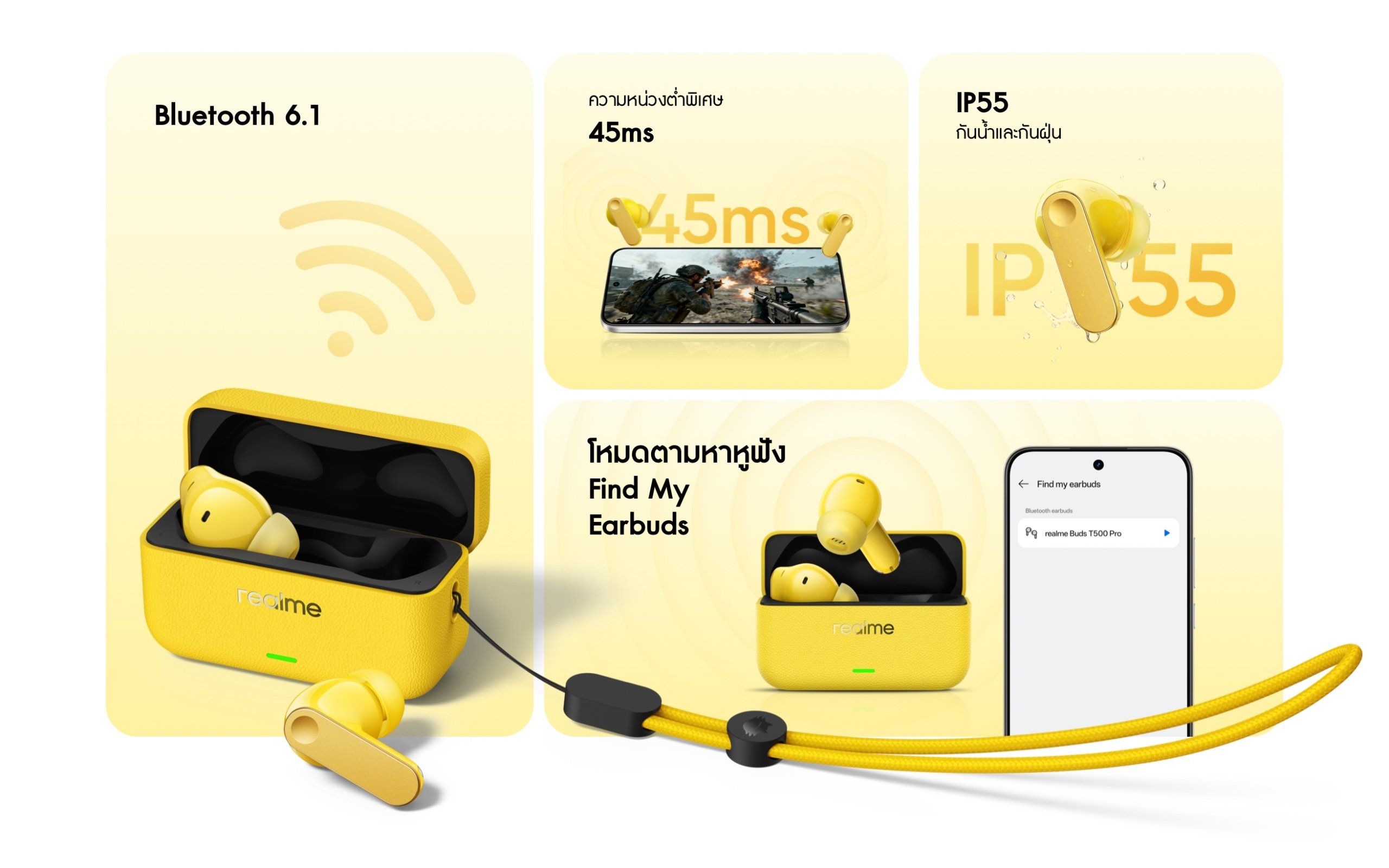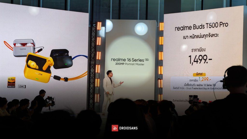 realme Buds T500 Pro วางจำหน่ายในราคาเพียง 1,499 บาท โดยมีโปรโมชันพิเศษเมื่อซื้อตั้งแต่วันที่ 19 มี.ค. 69 – 15 เม.ย. 69 ลดราคาพิเศษเหลือเพียง 1,299 บาท (เมื่อซื้อคู่ realme 16 Series 5G)