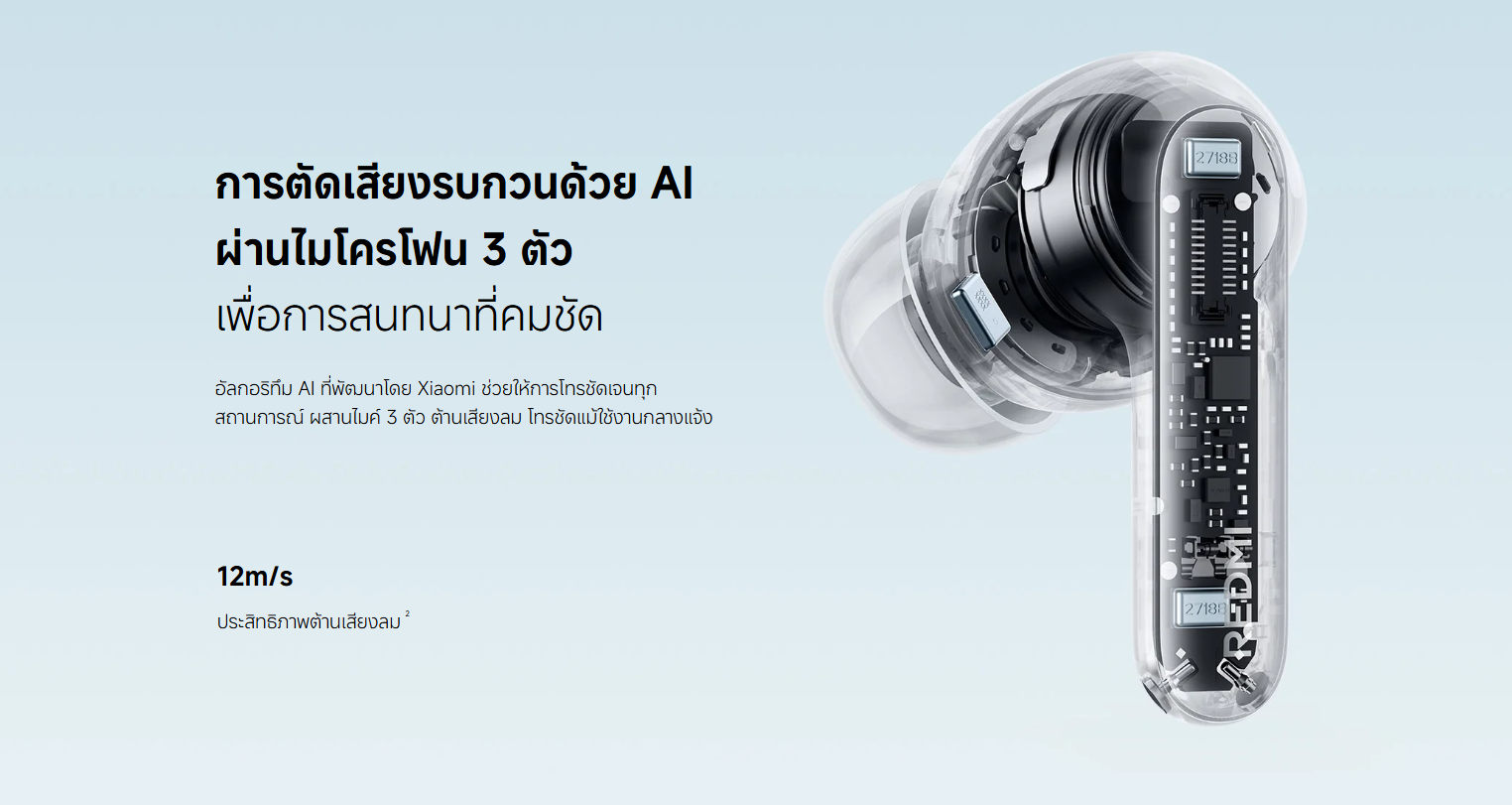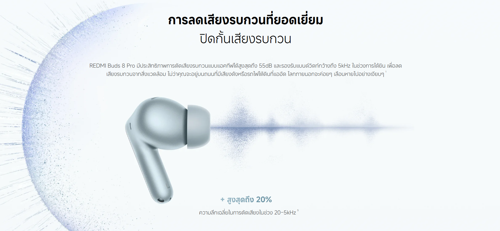 นอกจากคุณภาพเสียงที่ดีแล้ว “ระบบตัดเสียงรบกวน ANC” ก็เป็นอีกหนึ่งจุดเด่นของ REDMI Buds 8 Pro เพราะตัวหูฟังมาพร้อมกับไมค์ข้างละ 3 ตัว สามารถตัดเสียงรบกวนได้สูงสุด 55dB และมีการใช้ AI เข้ามาช่วยให้เสียงการสนทนาชัดเจนอยู่เสมอ แม้จะใช้งานหูฟังอยู่กลางแจ้งหรือในที่สาธารณะที่มีลมมากก็ตาม