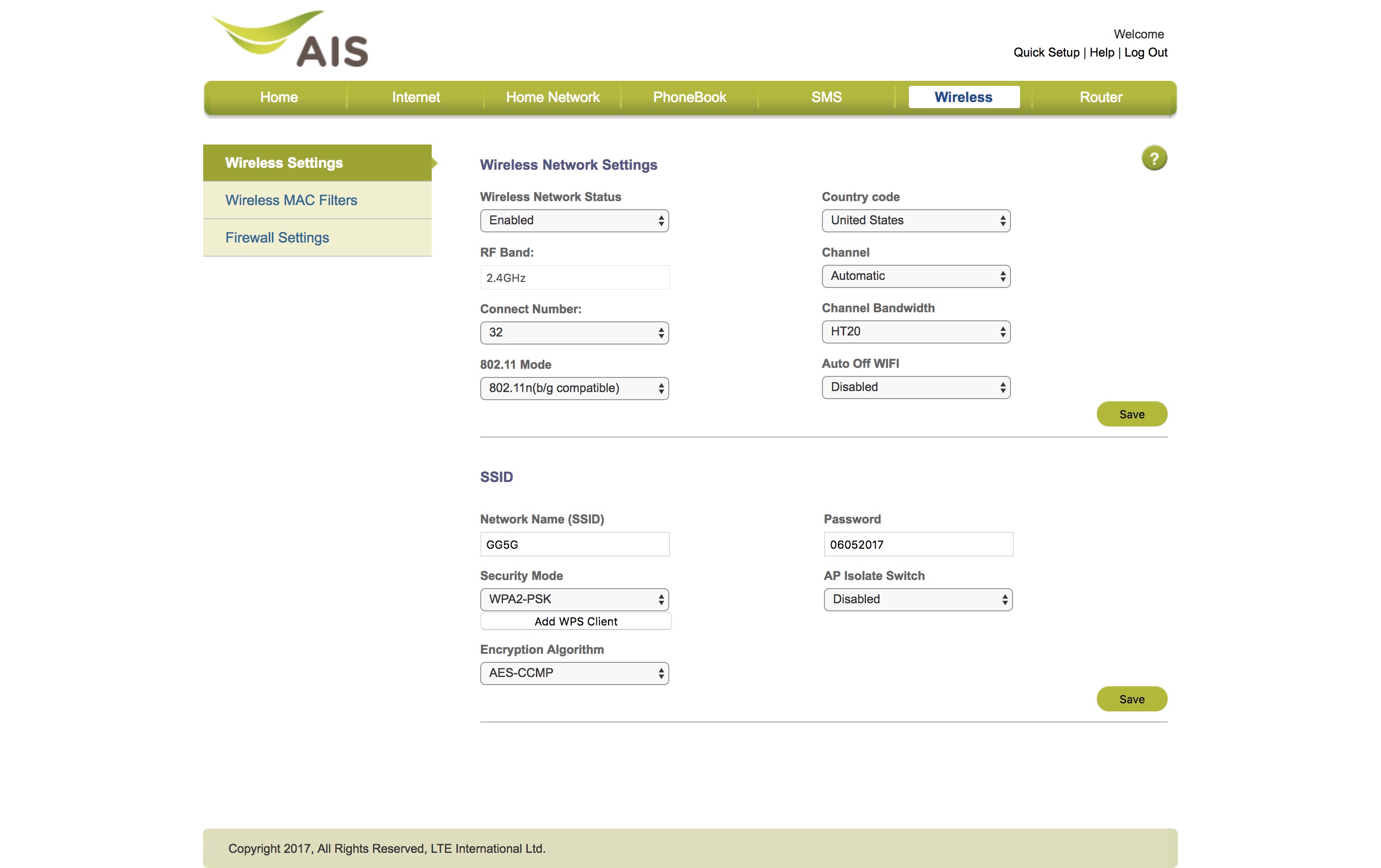 - ปล่อยสัญญาณ WiFi เป็น 802.11 b/g (ไม่รองรับการปล่อย WiFi 5GHz)