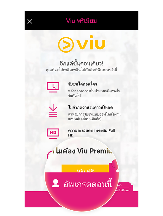 วิธีการอัพเกรดเป็นพรีเมี่ยม (ตอนนี้ทำได้ผ่านมือถือเท่านั้น)