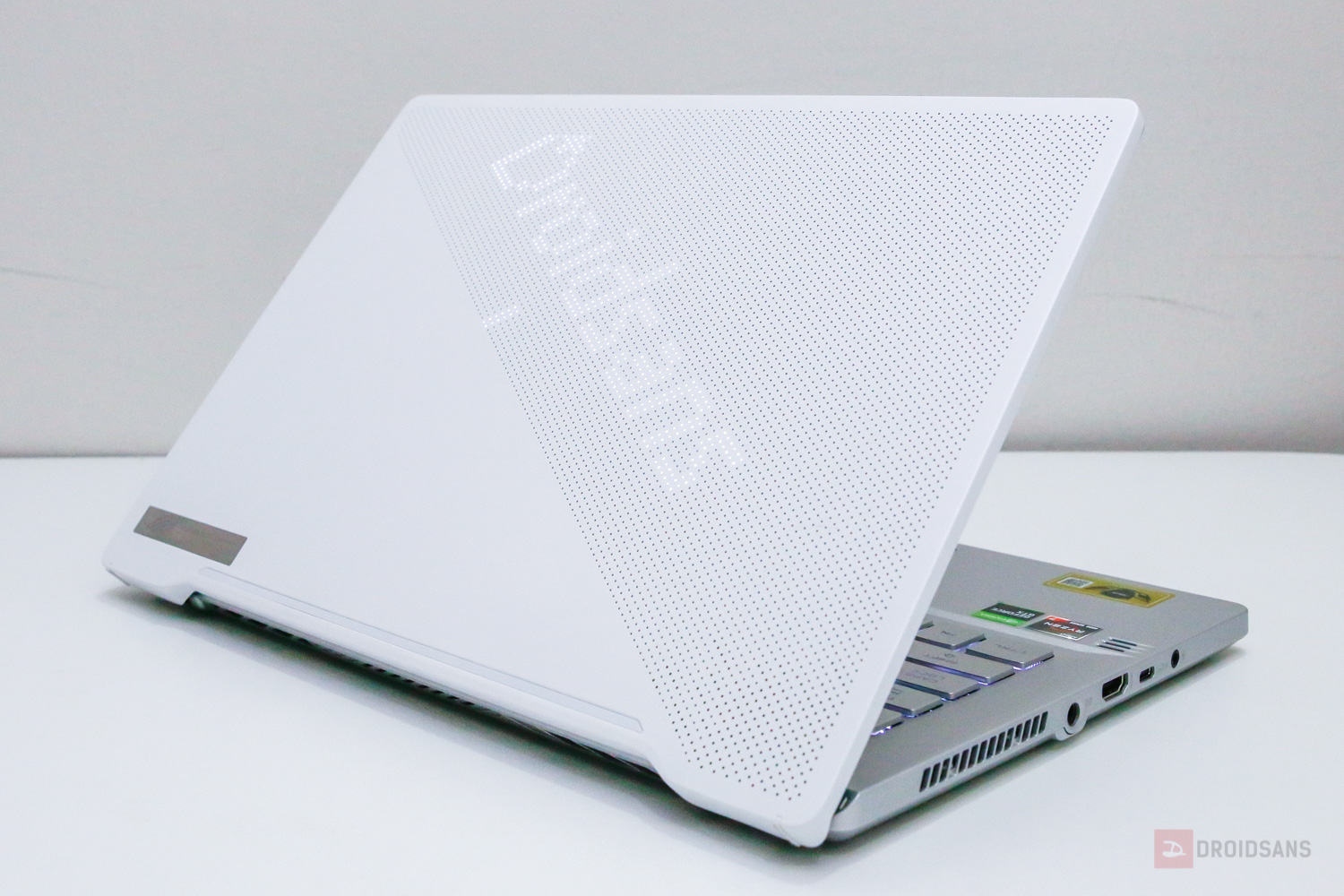 ทางด้านพอร์ตเชื่อมต่อทั้งหมดของ ASUS ROG Zephyrus G14 จะถูกอัปเกรดขึ้นกว่าเดิมโดยทางขวามือตัวเครื่องจะมี USB 3.2 Type A จำนวน 2 พอร์ต, USB 3.2 Type C และ Kensington lock ส่วนทางด้านซ้ายตัวเครื่องซ้ายก็จะมี รูเสียบสายชาร์จ, Lan, HDMI, USB 3.2 Type C ที่รองรับทั้ง PD + DP และรูเสียบหูฟัง Headset 3.5 mm อีกหนึ่งช่อง เรียกได้ว่าให้มาค่อนข้างครบเหมือนกัน