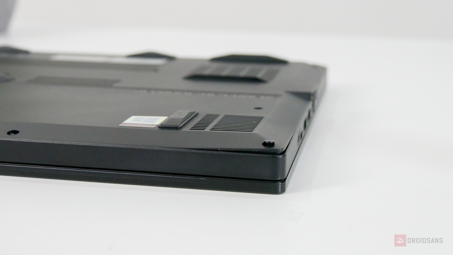 แกนฝาพับตัวเครื่องจะเป็นแบบสองแกนซ้ายขวา ทดลองเปิดปิดก็ทำงานได้ดีแข็งแรง สามารถกางหน้าจอได้ประมาณ 130 องศา ส่วนช่องระบายความร้อนตัวเครื่องจะมีด้วยกันทั้งหมด 3 จุดคือ ด้านหลัง 2 จุด และด้านขวาอีก 1 จุด