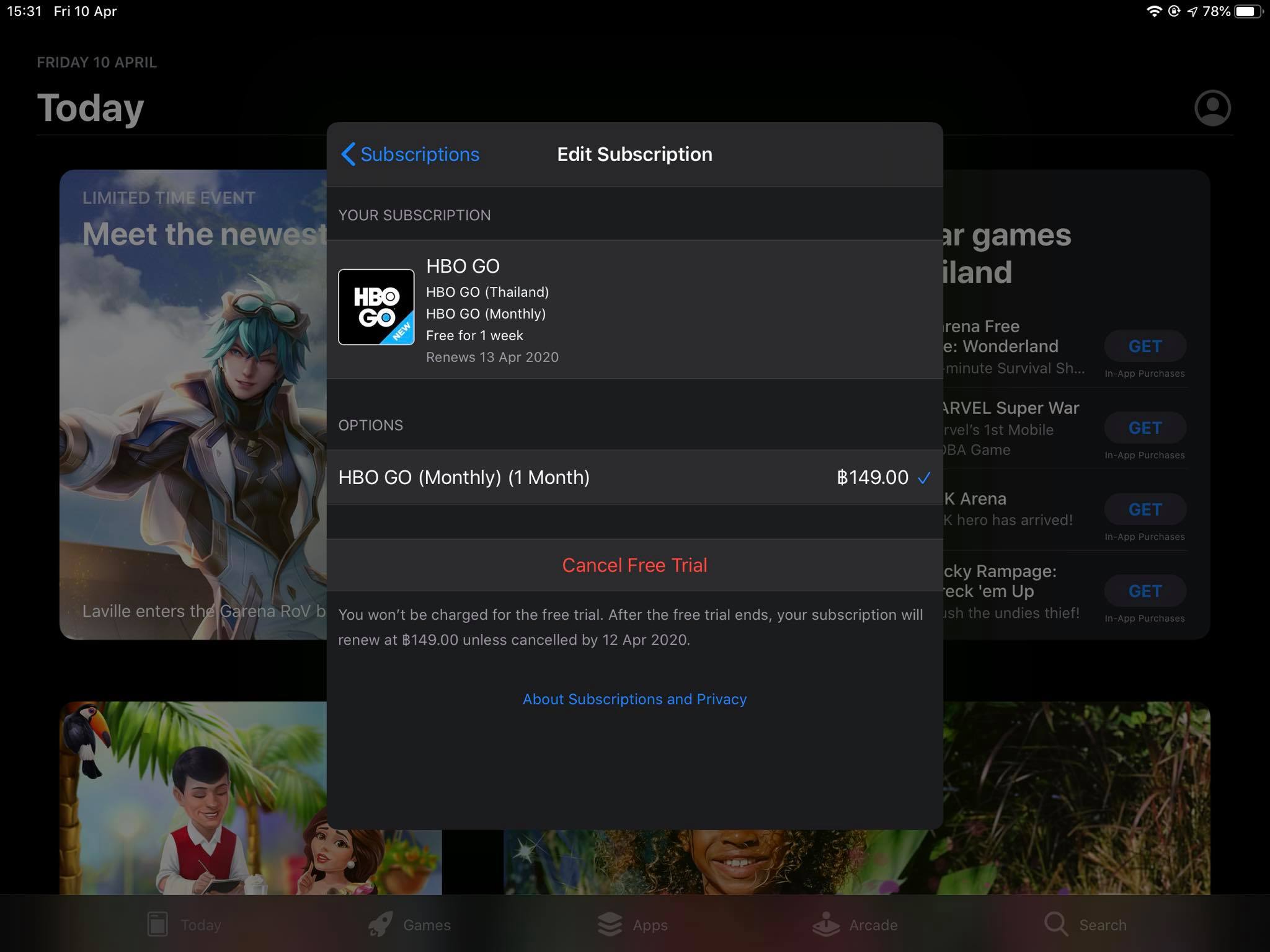 โดย HBO GO มี Free Trial หรือช่วงทดลองให้ใช้งานฟรีอยู่ทั้งหมด 7 วัน ใครที่ยังลังเลตัดสินใจไม่ได้ว่าจะจัดเลยดีไหม ก็ลองใช้งานฟรีไปก่อนหนึ่งสัปดาห์ก็ได้ครับ แล้วค่อยตัดสินใจตอนหลังว่าจะต่อไหม แต่อย่าลืมไปกดยกเลิกนะ ถ้าจะไม่ใช้งานต่อ ไม่งั้นโดนหักเงินไปฟรีๆ 149 บาทเลยนะ
