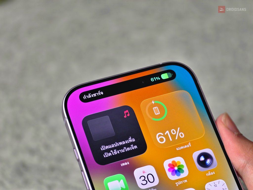 - Dynamic Island ที่อาจจะบังภาพเวลาดูคลิป หรือเล่นเกม