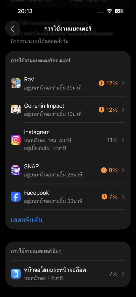 iPhone 17 (3,692 mAh) | ชาร์จแบตเตอรี่ได้ 37% | ชาร์จแบตเตอรี่ได้ 66% | ใช้เวลาทั้งหมด 1 ชั่วโมง 16 นาที |