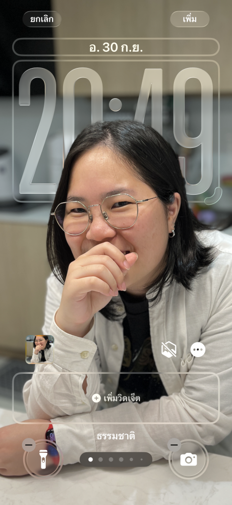iOS 26 ก็มอบอิสระในการปรับแต่งให้เราเยอะมากขึ้น ส่วนหลักที่ผมชอบเลยก็คือหน้าจอล็อกนี่แหละที่มีนาฬิกาแบบใหม่ซึ่งสามารถยืด-หด ได้ตามจต้องการ และยิ่งมารวมกับวอลเปเปอร์ที่เป็นภาพบุคคล หรือภาพที่เป็นเลเยอร์ มีระยะหน้าหลังแล้ว สวยงามมากๆ จริงๆ