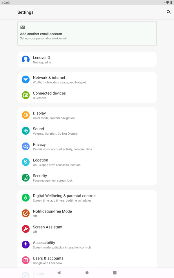 อินเทอร์เฟซของ Lenovo Tab M10 FHD Plus (2nd Gen) จะมักลักษณะใกล้เคียงกับ Android พื้นฐานเกือบทั้งหมด เรียกได้ว่า Google ดีไซน์มาแบบไหน เลอโนโวก็ใส่มาให้แบบนั้นเลย ผมคิดว่า ตรงนี้มีทั้งข้อดีและข้อเสีย ข้อดีคือ ดูโล่ง สะอาดตา เข้าใจง่าย ตอบสนองได้ดีและเร็ว ที่สำคัญผมไม่เจอบั๊กอะไรเลย ส่วนข้อเสียคือ ด้วยความที่เรียบง่ายแบบสุด ๆ จึงแทบไม่มีฟีเจอร์อะไรเลย และน่าเสียดายที่ยังเป็น Android 10 ไม่ใช่ Android 11 และไม่รู้ว่า เมื่อไหร่ถึงจะได้รับการอัปเดต