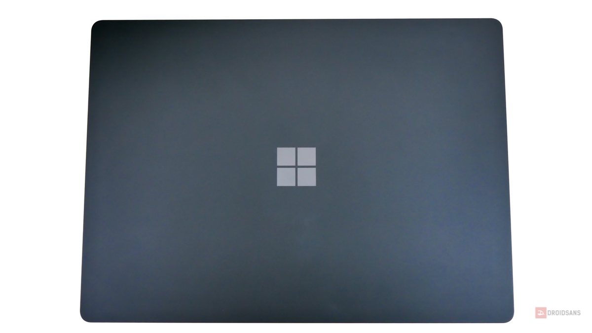 ด้านหลังตัวเครื่องเป็นโลโก้ธง Microsoft ดูสวยงามเป็นซิกเนเจอร์ที่ดูก็รู้ทันทีว่านี่คือเครื่อง Surface สำหรับผิวสัมผัสจะเป็นผิวเรียบไม่เป็นรอยนิ้วมือง่าย พร้อมกับแกนฝาพับที่เป็นแกนเดี่ยวตรงกลางแข็งแรงไม่มีโยกเยก และกางหน้าจอได้สูงสุดประมาณ 130 องศา