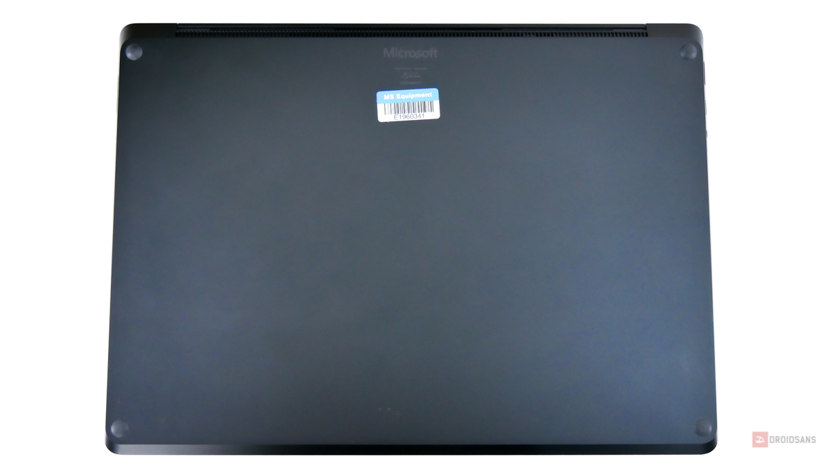 ถัดมาที่ด้านใต้ตัวเครื่องก็ไม่ได้มีอะไรพิเศษ ดีไซน์ยังคงเรียบๆ มีแค่โลโก้ Microsoft ระบุชื่อโมเดล และซีเรียลนัมเบอร์เท่านั้น ไม่มีสติ๊กเกอร์อื่นแปะให้รำคาญตา