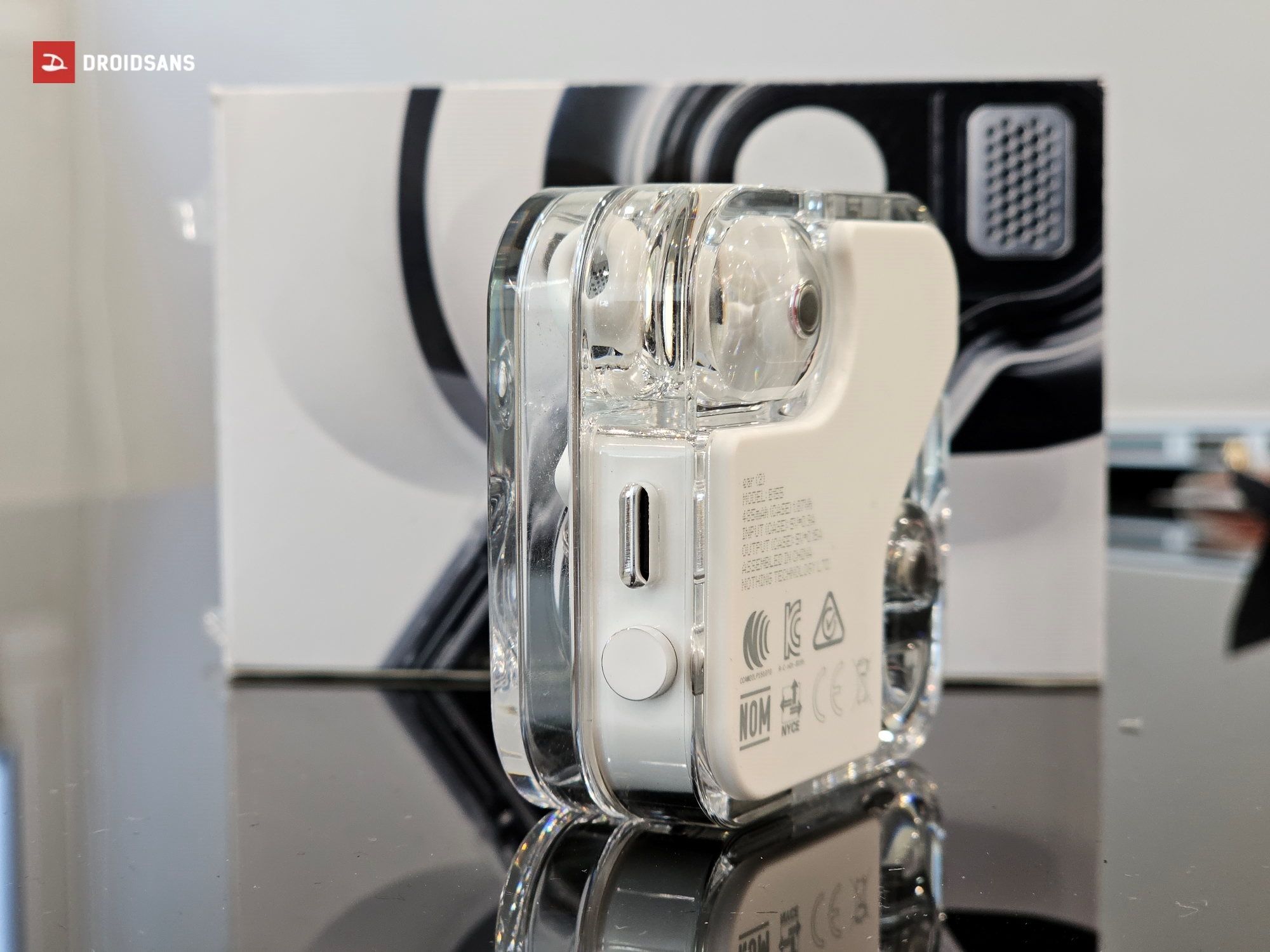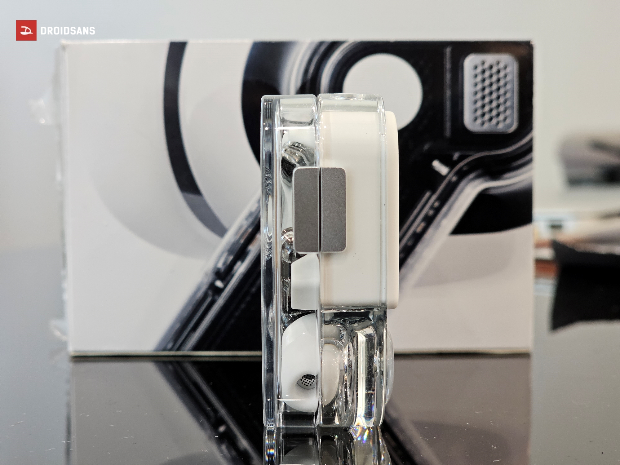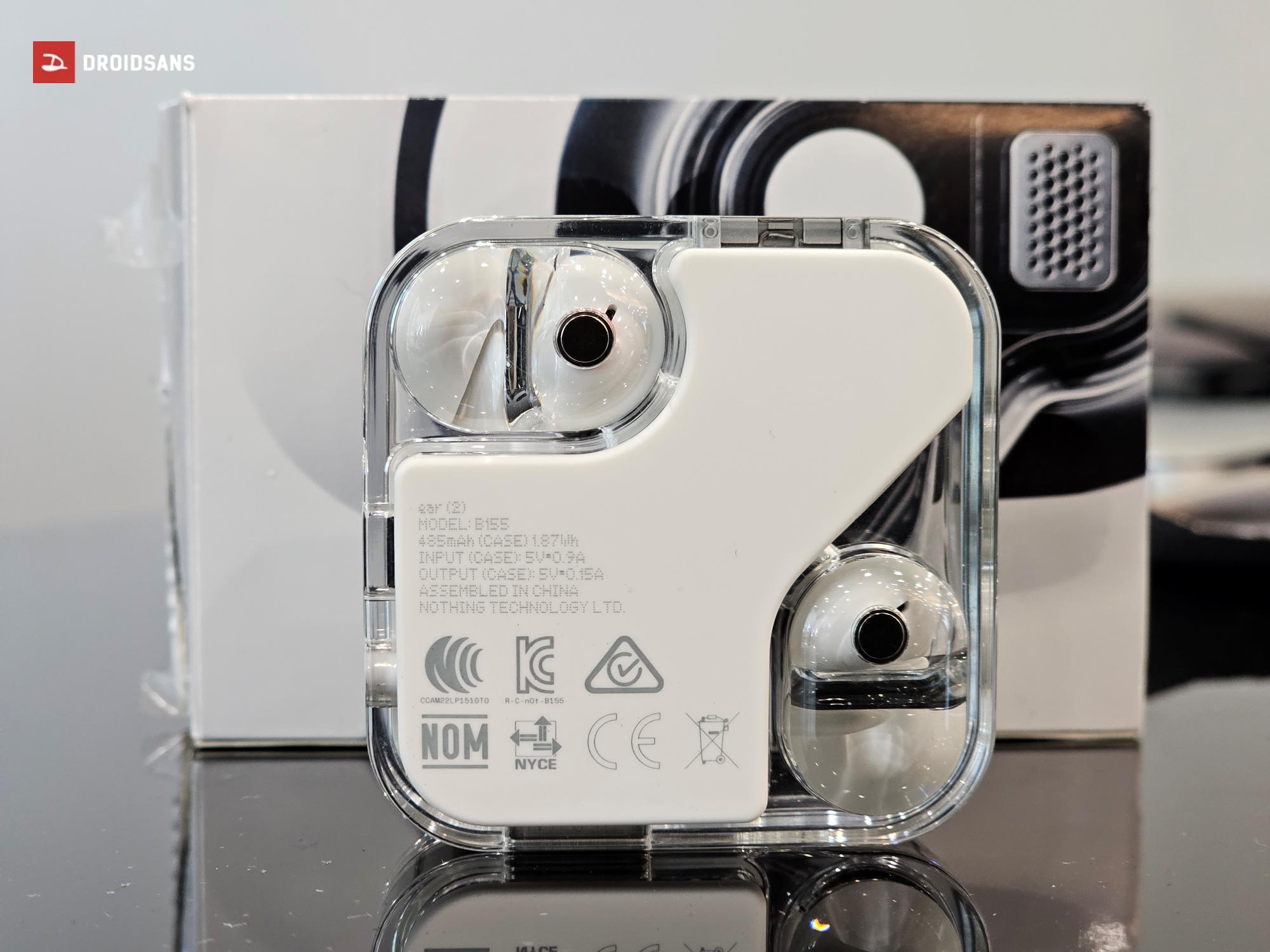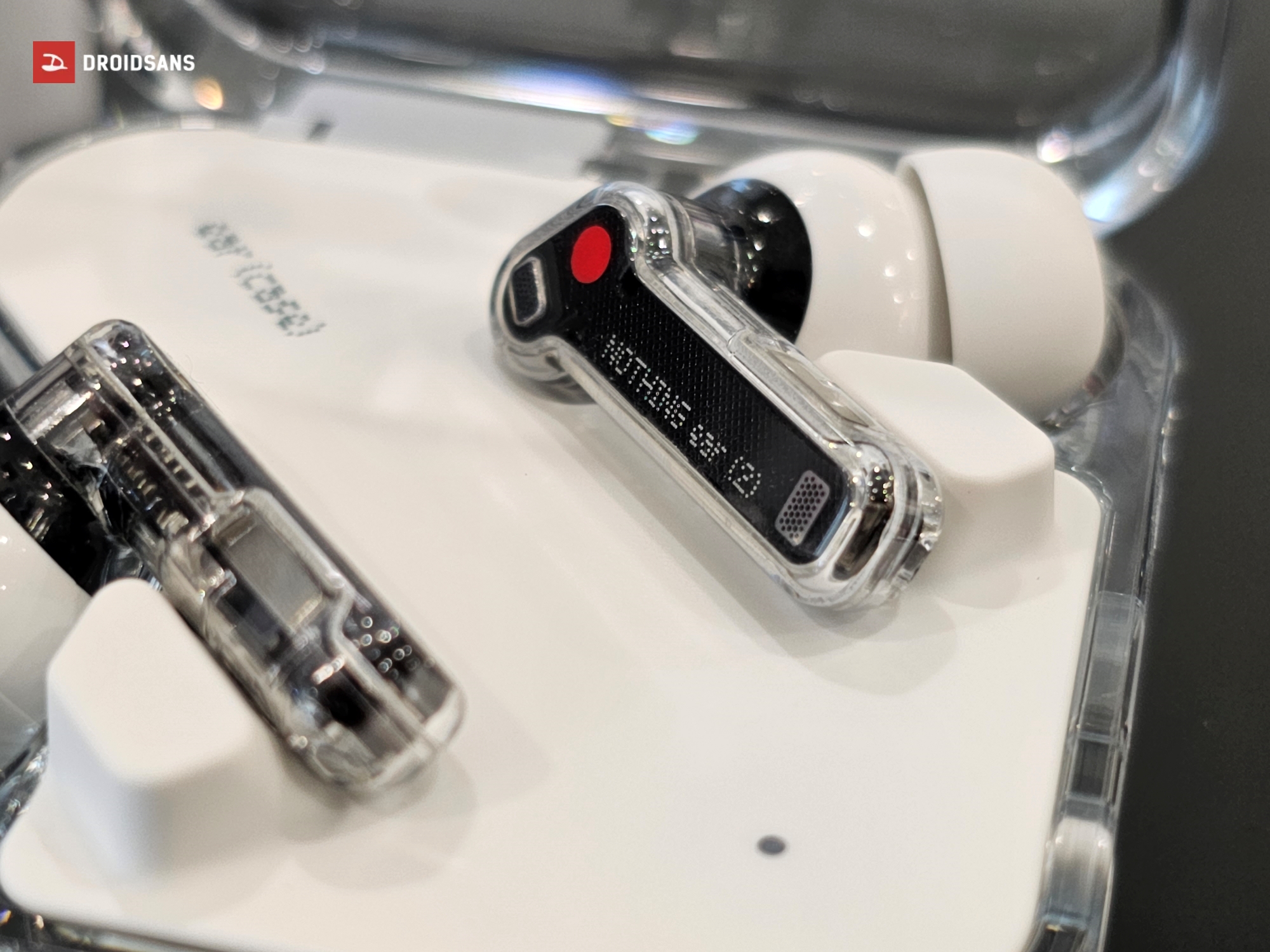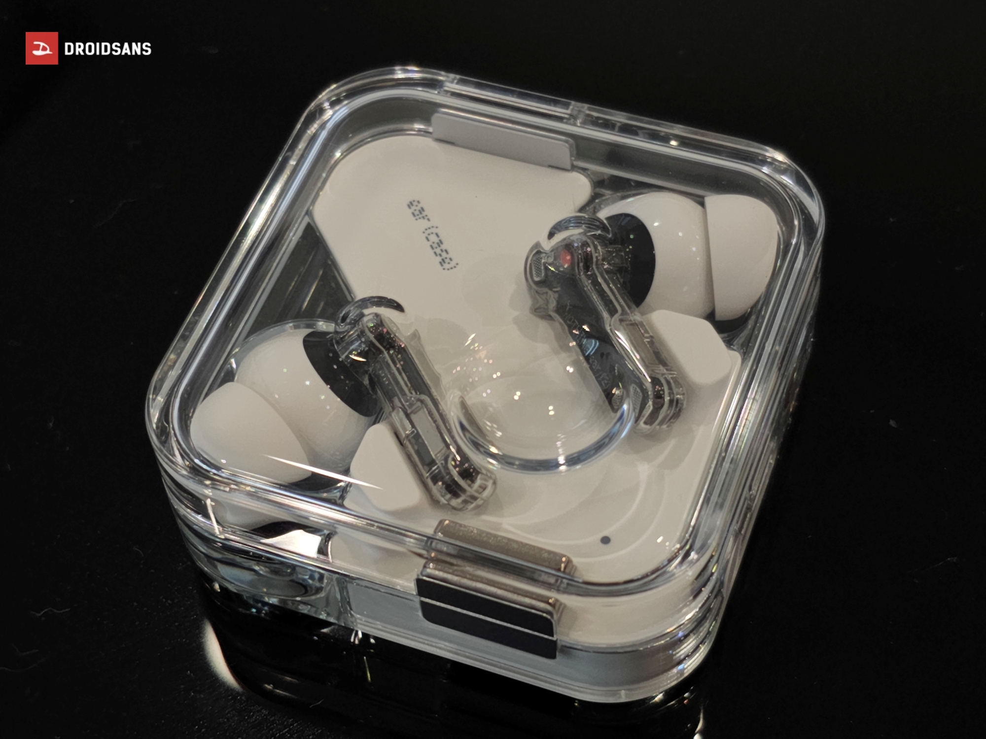 สำหรับตัวหูฟัง และเคสของ Nothing Ear (2) ยังมาในดีไซน์กึ่งโปร่งใส แวววาว เห็นส่วนประกอบด้านในเช่นเดิม ซึ่งดีไซน์หากดูด้วยตาเปล่าแล้วอาจจะยังไม่แตกต่างจากในรุ่นก่อนเท่าไหร่ แต่หากสังเกตดี ๆ จะพบว่าตัวกล่องชาร์จจะมีความเป็นเหลี่ยมมากกว่าในรุ่นเดิมอย่างเห็นได้ชัด วัสดุพลาสติกมีความหนา และดูมีราคามากกว่าในรุ่นก่อน ฐานของตัวหูฟังถูกปรับให้นูนออกมาจากตัวเคสทำให้เวลาวางไม่ต้องกังวลว่าจะเป็นรอย