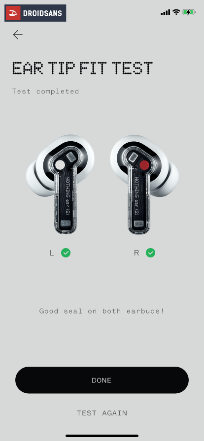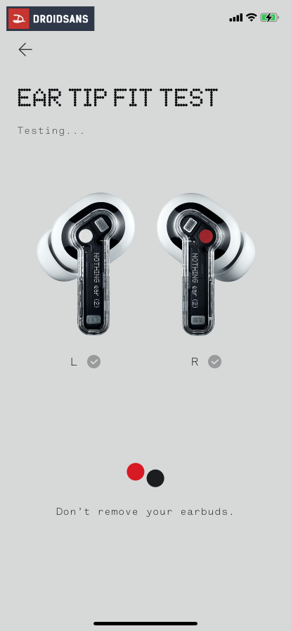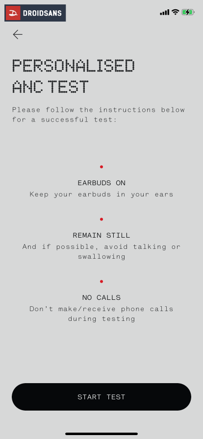 ในรุ่นนี้ยังมาพร้อมกับฟีเจอร์ Personalised ANC โหมดตัดเสียงรบกวนที่ปรับให้เข้ากับตัวผู้ใช้งาน ซึ่งหากเปิดใช้ฟีเจอร์นี้ผ่านแอป Nothing X เราก็จะต้องทำแบบทดสอบเพื่อปรับการตอบสนองความถี่ ANC ให้เหมาะกับหู และสภาพแวดล้อมเสียงในขณะนั้น