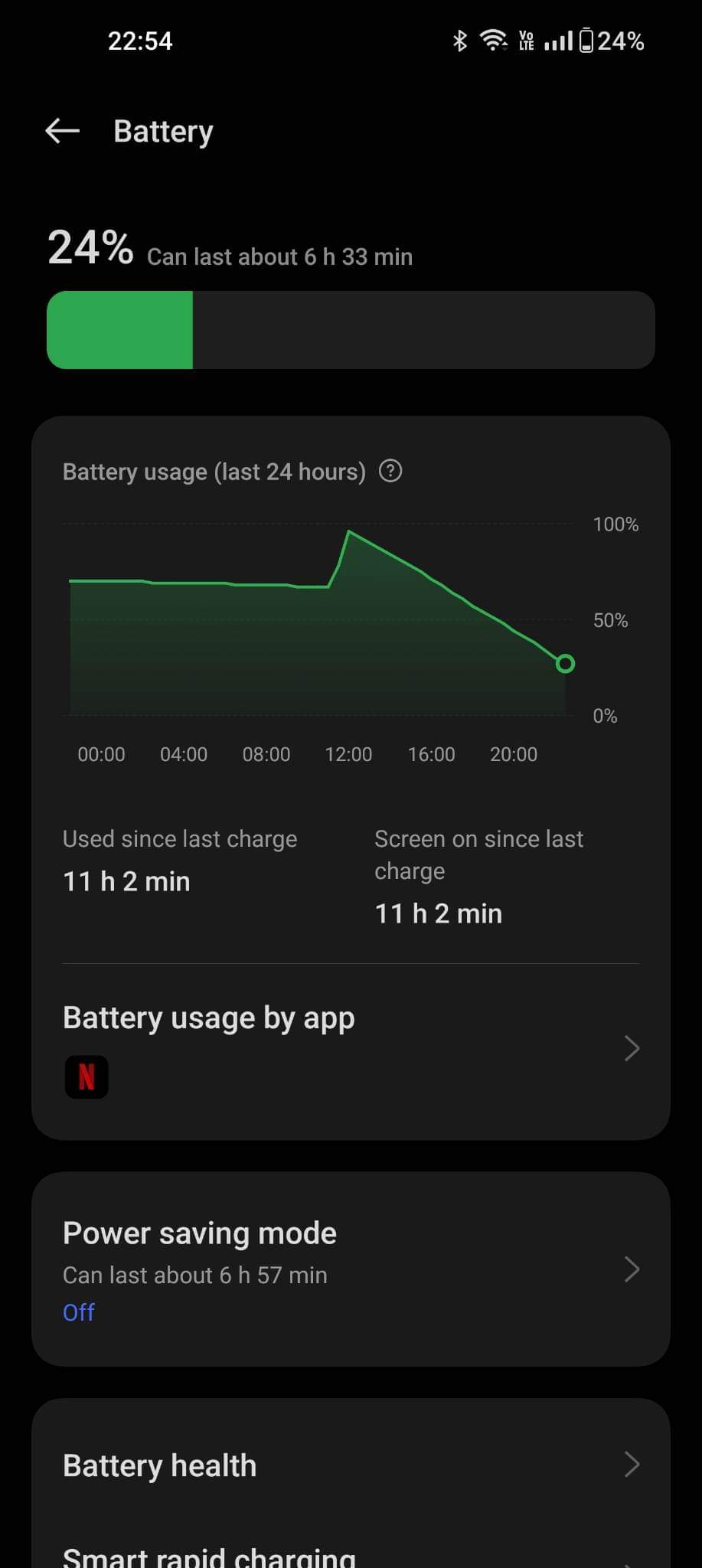 แบตเตอรี่ขนาด 5000 mAh ใช้งานทั่วไปใส่ซิม 5G เล่นเน็ต แชททั้งวัน เล่นเกมนิด ๆ หน่อย ๆ ราวครึ่ง ชม. ดูคลิปจาก YouTube บ้าง ฟังเพลงกับหูฟังไร้สายบ้าง ถ่ายรูปถ่ายวิดีโอ ฯลฯ สามารถอยู่ได้สบาย ๆ ทั้งวันแบบไม่ต้องลุ้นว่าแบตเตอรี่จะหมดก่อนกลับบ้าน