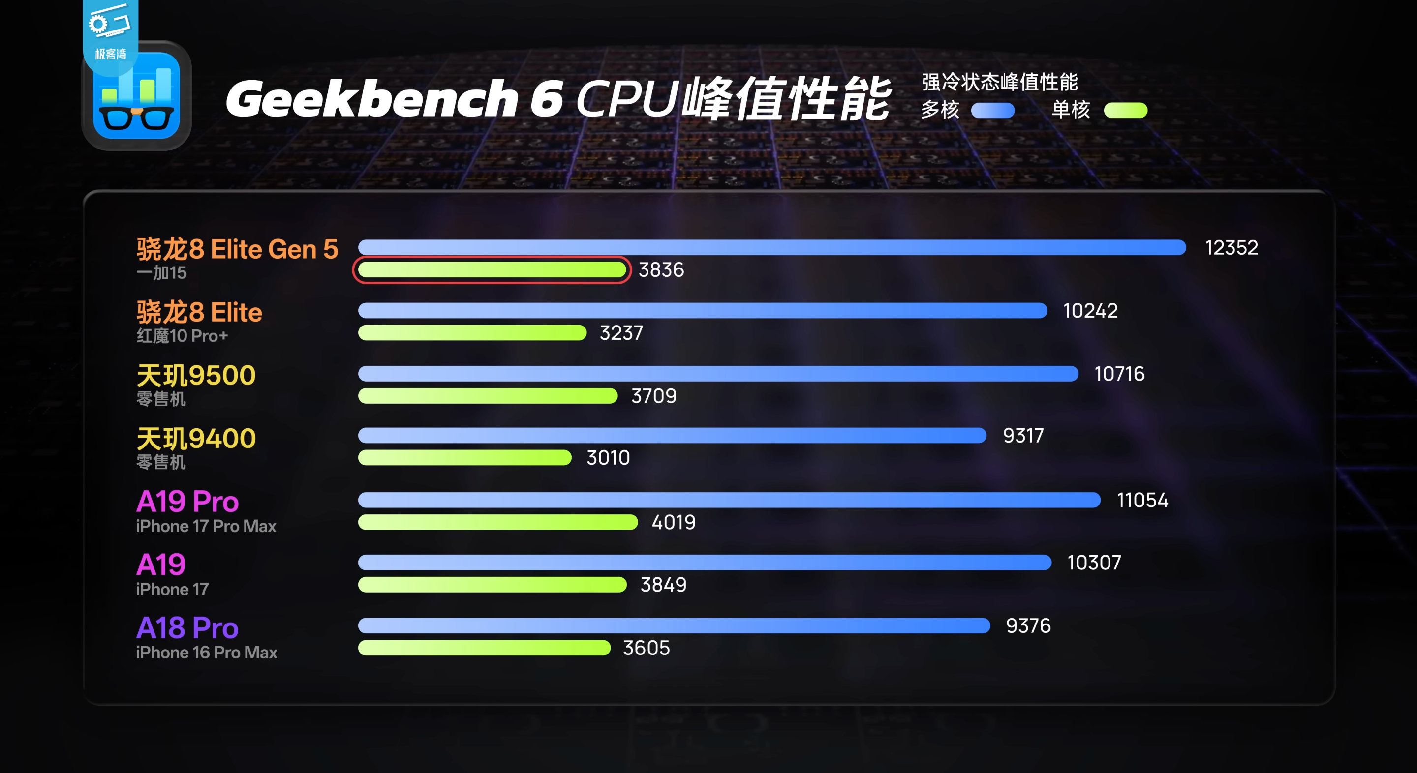 จากการทดสอบคะแนน Benchmark ของชิปเซ็ต Snapdragon 8 Elite Gen 5 ที่ติดตั้งอยู่บน OnePlus 15 สรุปออกมาได้ว่าสามารถทำคะแนนซีพียูฝั่งมัลติคอร์ได้สูงกว่า Apple A19 Pro และ Dimensity 9500 ได้แบบฉลุย