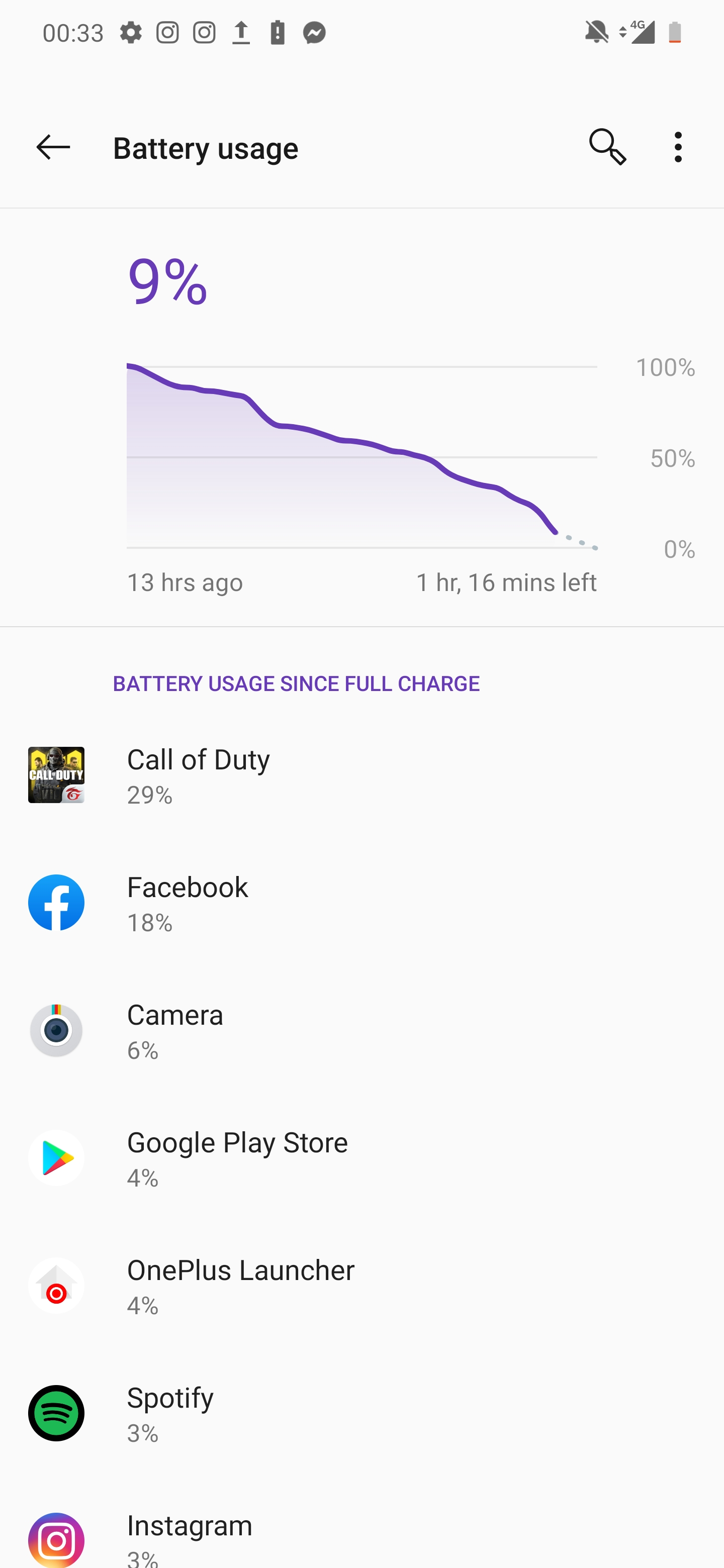 เริ่มกันที่ OnePlus 7T กันก่อนดีกว่า ผมลองเอามาใช้งาน เล่นเกมแบบจัดหนักจัดเต็มเลย (บอกแล้วว่าติด Call of Duty จริง) พบว่าได้ Screen On Time ไปประมาณ 4 ชั่วโมง 40 นาที พร้อมกับแบตเตอรี่ที่เหลืออยู่เพียงแค่ 9% เท่านั้น