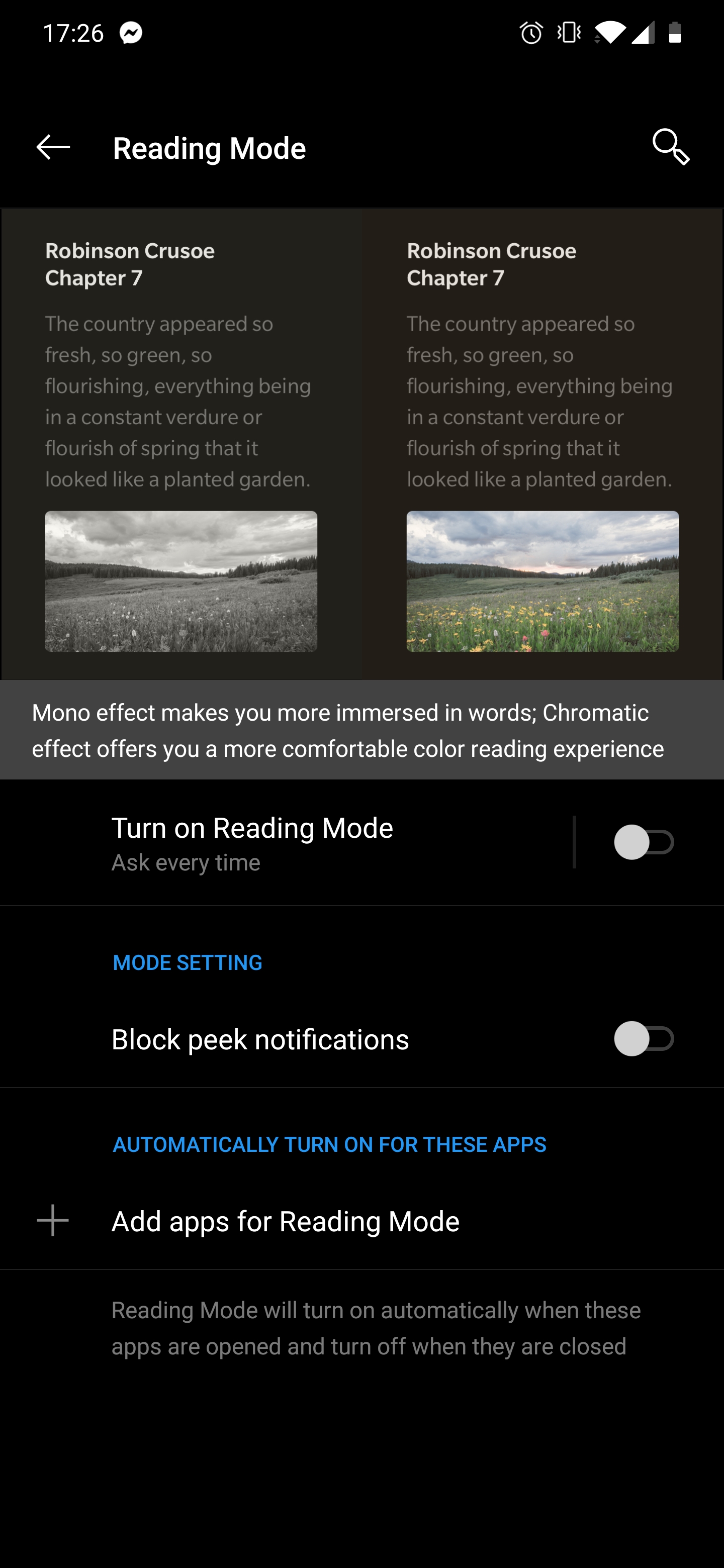 ฟีเจอร์สามัญประจำเครื่องโทรศัพท์อย่างฟีเจอร์ตัดแสงสีฟ้าซึ่งทาง OnePlus ตั้งชื่อว่า Night Mode ก็มีมากับเขาเหมือนกัน สามารถตั้งเวลาเปิดปิดได้ด้วยนะ สำหรับใครที่ชอบเล่นมือถือในที่แสงน้อยๆ แนะนำเลยว่าเปิดเถอะ เพราะมันสบายตาและช่วยถนอมสายตากว่าโหมดปกติมากๆ แต่ถ้ายังไม่พอ ยังมี Reading Mode มาให้เลือกอีก ลดแสงสีฟ้าลง สบายตาขึ้นแต่จะอมเหลืองนิดๆ และมีให้เลือก 2 แบบคือ Chromatic Effect (สีจางๆ) และ Mono Effect (สีขาวดำ)