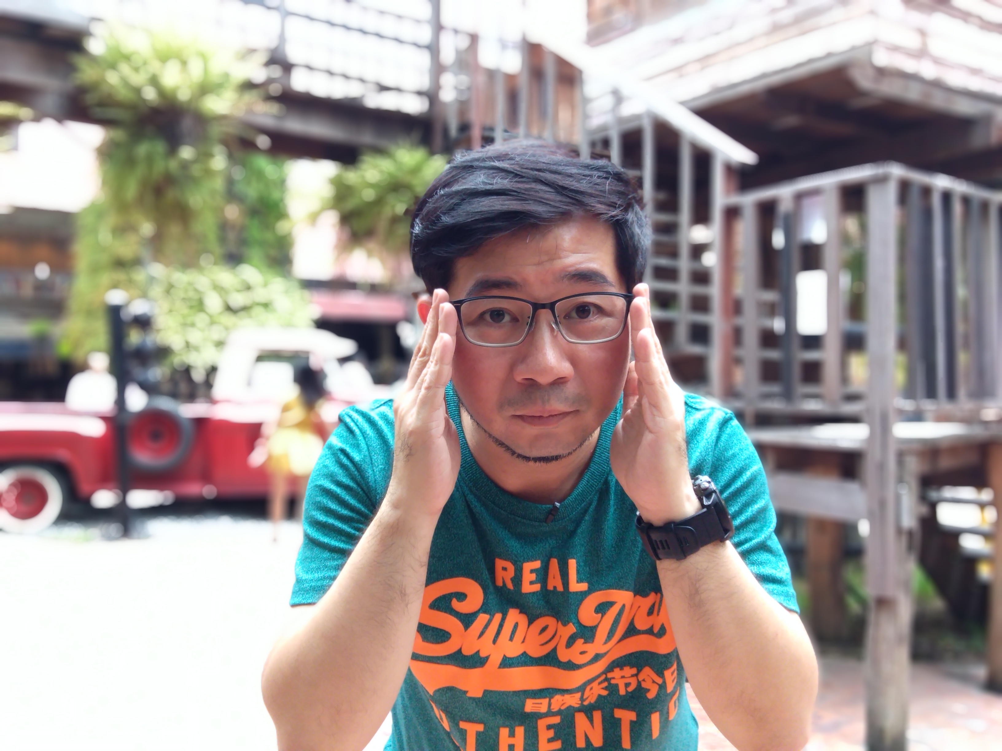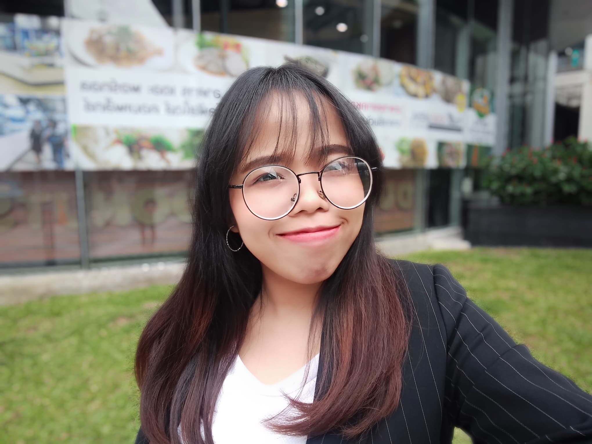 นอกจากนั้นยังมีโหมดเบลอหลังมาให้ด้วย แต่อาจจะต้องหมุนๆ หามุมกันหน่อย เพราะบางครั้งสีใกล้เคียงกันมันก็จะยังตัดไม่ขาด แล้วก็มีโหมด HDR มาให้ด้วยนะ สำหรับการเพิ่มความสว่างให้เท่ากันทั้งภาพโดยหน้าเราก็จะสว่างขึ้นและฉากที่ด้านหลังก็ยังไม่ได้สว่างจนโอเว่อร์ มีรายละเอียดให้เห็นกันอยู่