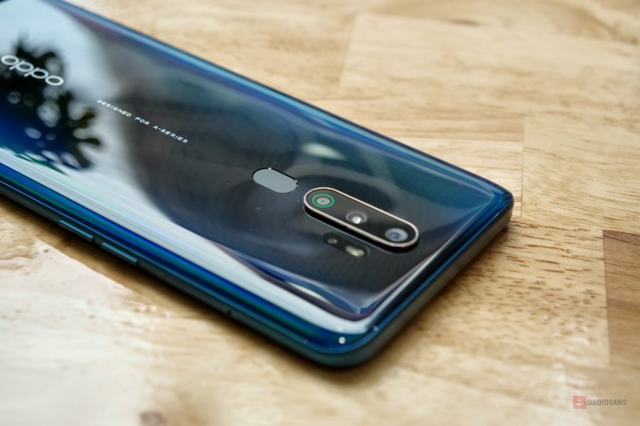 OPPO A9 2020 เครื่องที่ทีมงานได้มารีวิวนั้นเป็นสีเขียวน้ำทะเล เงาๆ สะท้อนแสง 3D Aesthetics Design อารมณ์คล้ายกับตัวรุ่นท็อปตัวพี่ Reno ผิวสัมผัสที่ฝาหลังจะหนืดๆ มือไม่ลื่นมาก ถือใช้งานถือมือเดียวได้ถนัดไม่ลื่นหลุดมือง่าย แต่ฝาหลังเป็นรอยนิ้วมือง่ายไปหน่อย ต้องคอยมันขยันเช็ดหรือใส่เคสที่แถมมากับเครื่องก็ได้