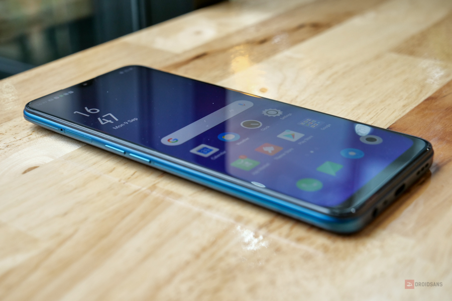 หน้าจอตัวเครื่องให้มาขนาดใหญ่ถึง 6.5 นิ้ว มีติ่งกล้องหน้าเล็กน้อยแบบ Waterdrop ที่ให้สัดส่วนจอกับตัวถึง 89% เต็มๆ ตาไปเลย ส่วนด้านข้างตัวเครื่อง ฝั่งทางซ้ายจะมีปุ่มเพิ่มเสียงลดเสียงกับถอดใส่ซิมแบบ Triple Slot ฝั่งทางขวาจะมีปุ่มปลดล็อคเปิดปิดเครื่อง ด้านบนโล้นๆ ไม่มีอะไร ด้านล่างจะมีพอร์ตเชื่อมต่อรูฟัง 3.5 mm กับช่องเสียบสายชาร์จแบบ Type C และด้านหลังจะมีเซนเซอร์สแกนลายนิ้วมือกับกล้องสี่ตัวดีไซน์นูนออกมาจากตัวเครื่องเล็กน้อย