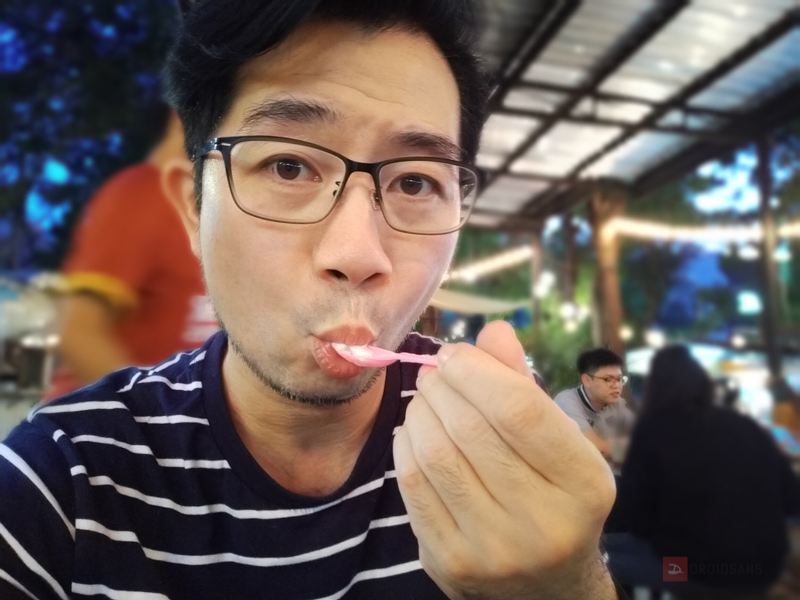 กล้องหน้าตัวเครื่องจะเป็นความละเอียด 16MP f/2.0 รูรับแสงถือว่าสว่างใช้ได้เลย เอาจริงใช้แค่โหมด Auto ก็สวยแล้ว โดยโหมด “รูปคน” จะเป็นการเบลอฉากหลัง โหมด “AI Beauty” จะเป็นเวอร์ชัน 2.0 ที่สามารถปรับคางเรียว หน้าใส ตาโต คิ้วเข้ม จมูกเล็ก ทำได้หมดจริงๆ (ในรูปปรับสุดทุกอย่าง) และอันสุดท้ายคือใส่โหมด “ฟิลเตอร์” เป็นสีโทนต่างๆ ครับ