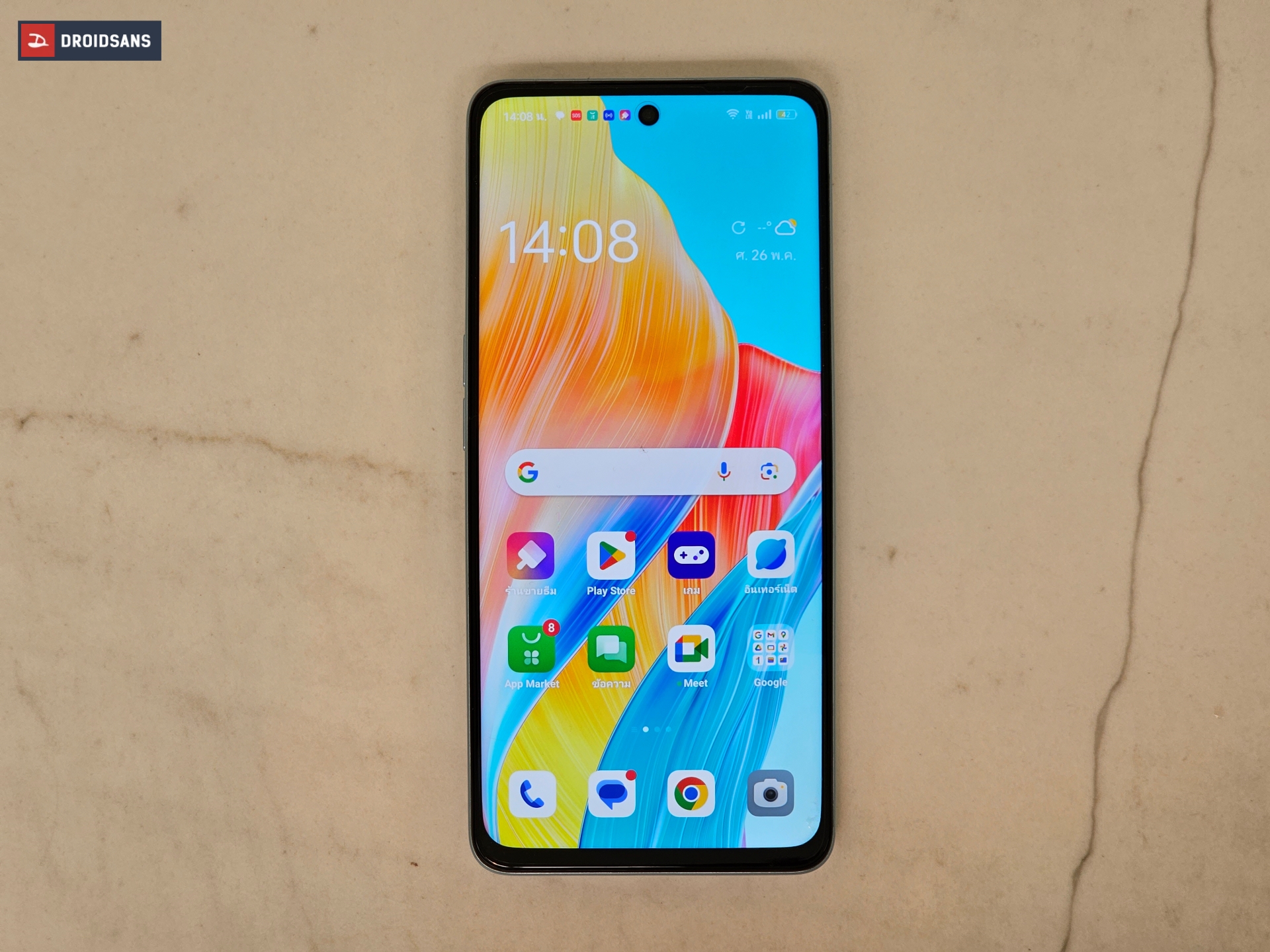 OPPO A98 5G มาพร้อมจอขนาดใหญ่ 6.72 นิ้ว ความละเอียด Full HD+ ที่สว่างสูงสุดถึง 680 nits รองรับรีเฟรชเรทระดับสูง 120Hz ทำให้สัมผัสได้ลื่นไหล ติดนิ้ว ส่วนสีสันต่าง ๆ ก็ถือว่าทำได้ดีในระดับมาตรฐานจอ LCD ไม่ถึงกับว่าซีด และไม่จัดจ้านจนเกินไป แต่ก็มีจุดสังเกตอยู่ที่ขอบล่างของจอแสดงผลที่ทำออกมาได้ค่อนข้างหนาไปหน่อย