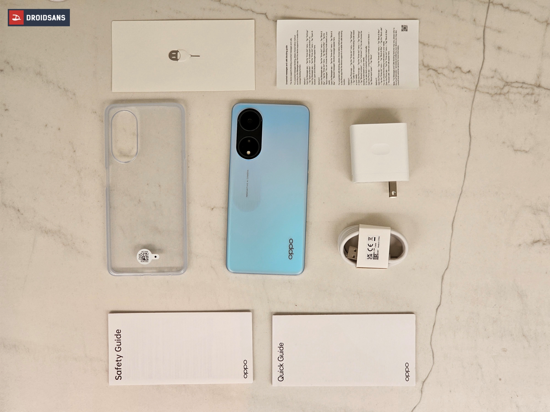 OPPO A98 5G มาพร้อมกล่องสีขาวอันเป็นเอกลักษณ์ของรุ่นปี 2023 ที่ด้านในยังคงบรรจุอุปกรณ์เสริมต่าง ๆ ไว้ให้แบบครบครับ ทั้งเคส หัวชาร์จ Super VOOC และสายชาร์จ แถมตัวเครื่องยังติดฟิลม์กันรอยหน้าจอมาให้เรียบร้อย พร้อมใช้งานทันที ไม่ต้องซื้อเพิ่ม
