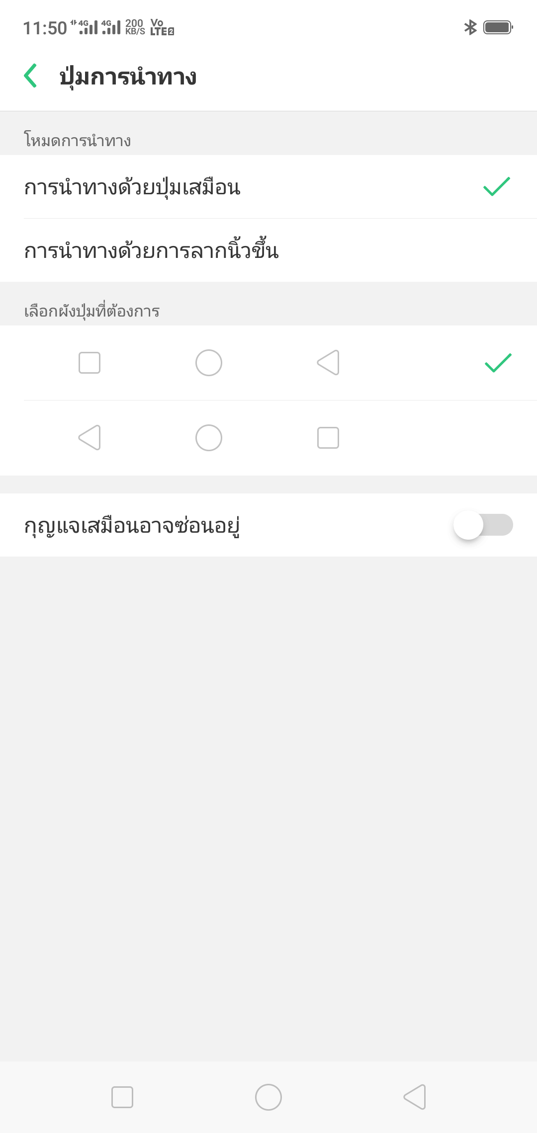 แต่สำหรับใครที่ยังชอบการใช้ปุ่มนำทางอยู่ ก็สามารถเปิดได้ จะสลับปุ่ม back กับปุ่ม overview (แอปล่าสุด) ก็ได้