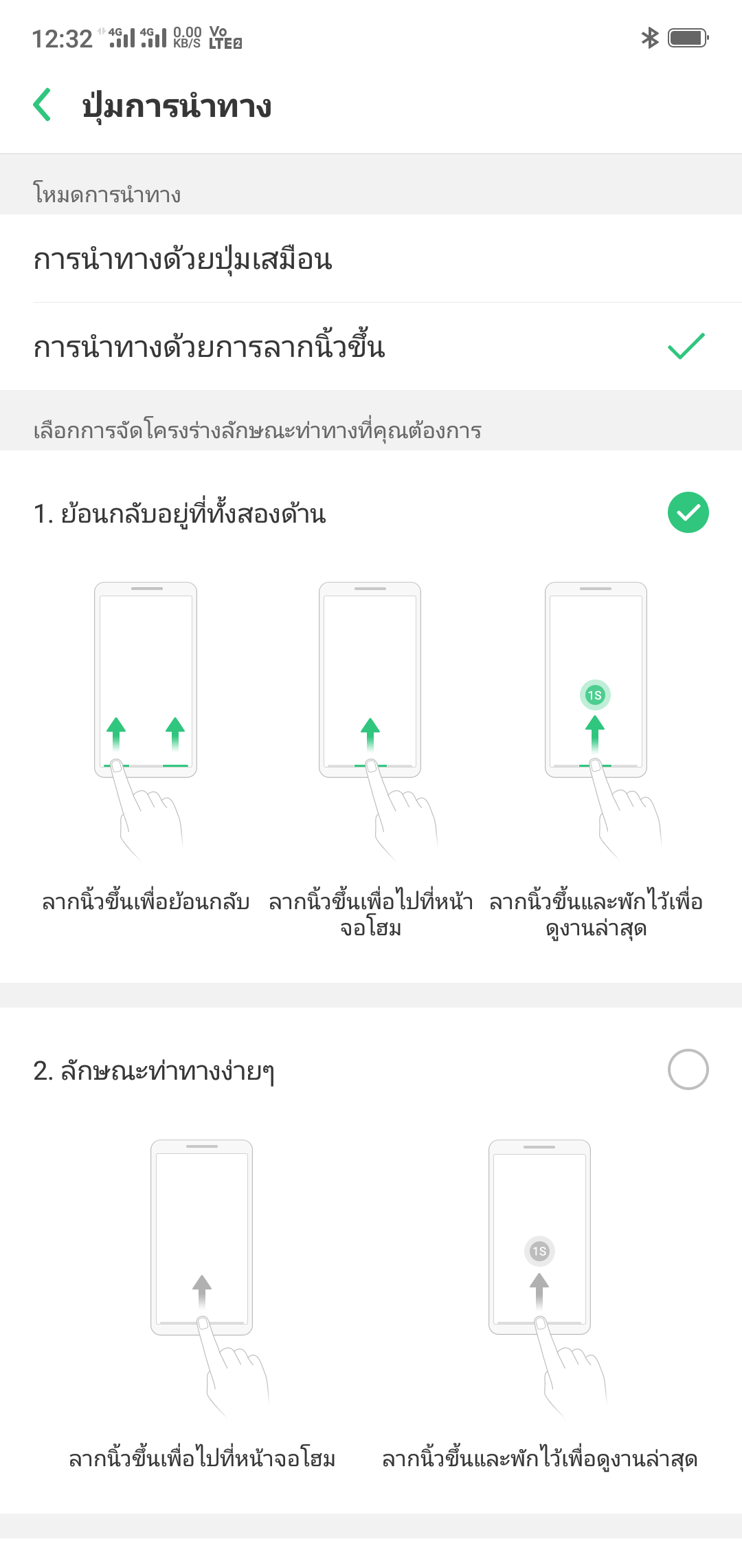 วิธีการตั้งค่า gesture control ก็มีหลายแบบ หลักๆ คือเลื่อนนิ้วจากด้านล่างขึ้นมากลางจอ จะเป็นการกลับสู่หน้าโฮม แต่ถ้าเลื่อนมาแล้วค้างเอาไว้จะเป็นรายการแอปทั้งหมดที่เปิดอยู่ ถ้าเลื่อนจากข้างๆ ขึ้นมาจะเป็นการย้อนกลับเหมือนปุ่ม back นอกจากนั้นก็ยังสามารถเลือกตั้งค่าได้อีกหลายแบบ