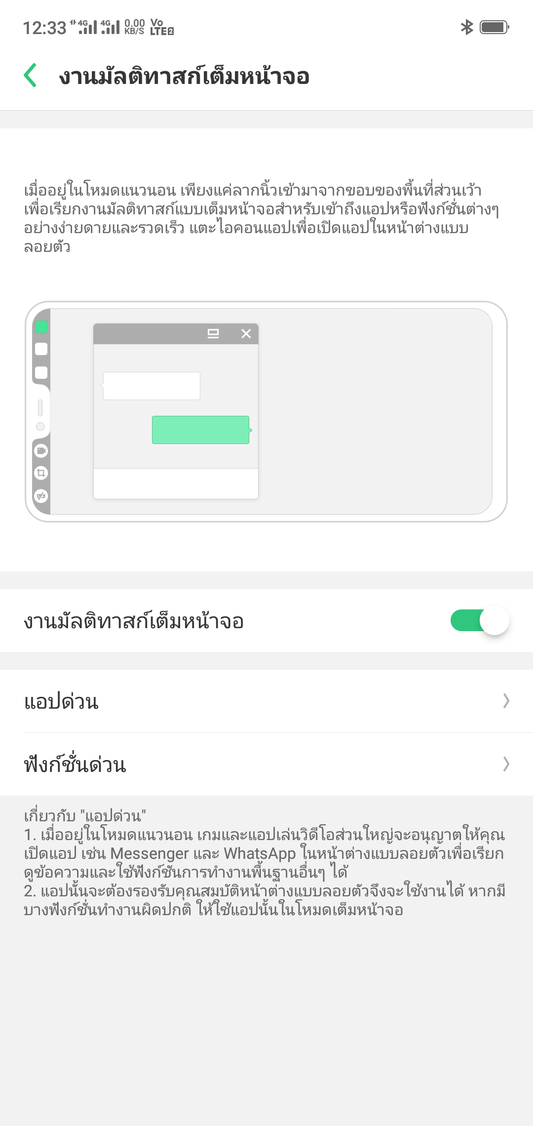 ซ่ึ่งในระหว่างเล่นหากมีคึนทักแชทมา มันก็จะเด้งเตือนเล็กๆ ที่ด้านข้าง ซึ่งเรียกแถบนี้ว่าเป็นแถบของแอปด่วน ที่สามารถเปิดขึ้นมาเป็นหน้าต่างได้