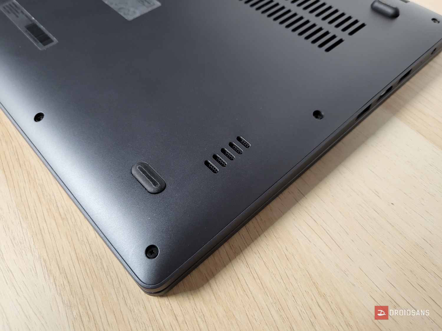 นอกจากช่องระบาย ลำโพงของรุ่นนี้ก็เป็นแบบสเตอรีโอคู่ 2 ข้างวางอยู่ใต้เครื่องเหมือนกัน (คุณภาพเดี๋ยวไปว่ากันอีกที) ส่วนงานประกอบอย่างที่บอกก็คือเนี้ยบมากทั้งบนทั้งล่าง สามารถแกะฝาหลังเองได้โดยขันน็อตหัวแฉกทั้ง 9 ตัว แต่น่าเสียดายที่รุ่นนี้อัปเกรดทั้งแรมและ SSD เพิ่มไม่ได้เลย ทำได้แค่เอา SSD M.2 เดิมออกแล้วเอาอันใหม่ใส่เข้าไปแทนเท่านั้น