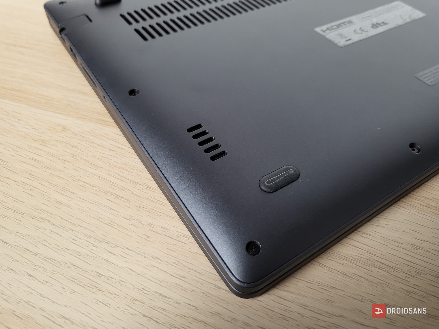 ด้านซ้ายตัวเครื่องจะประกอบด้วยพอร์ตต่าง ๆ ไล่จากซ้ายไปขวา ได้แก่ ช่องเสียบสายชาร์จแบบกลม, USB 3.2 Type-A, HDMI และ USB 3.2 Type-A อีกช่อง