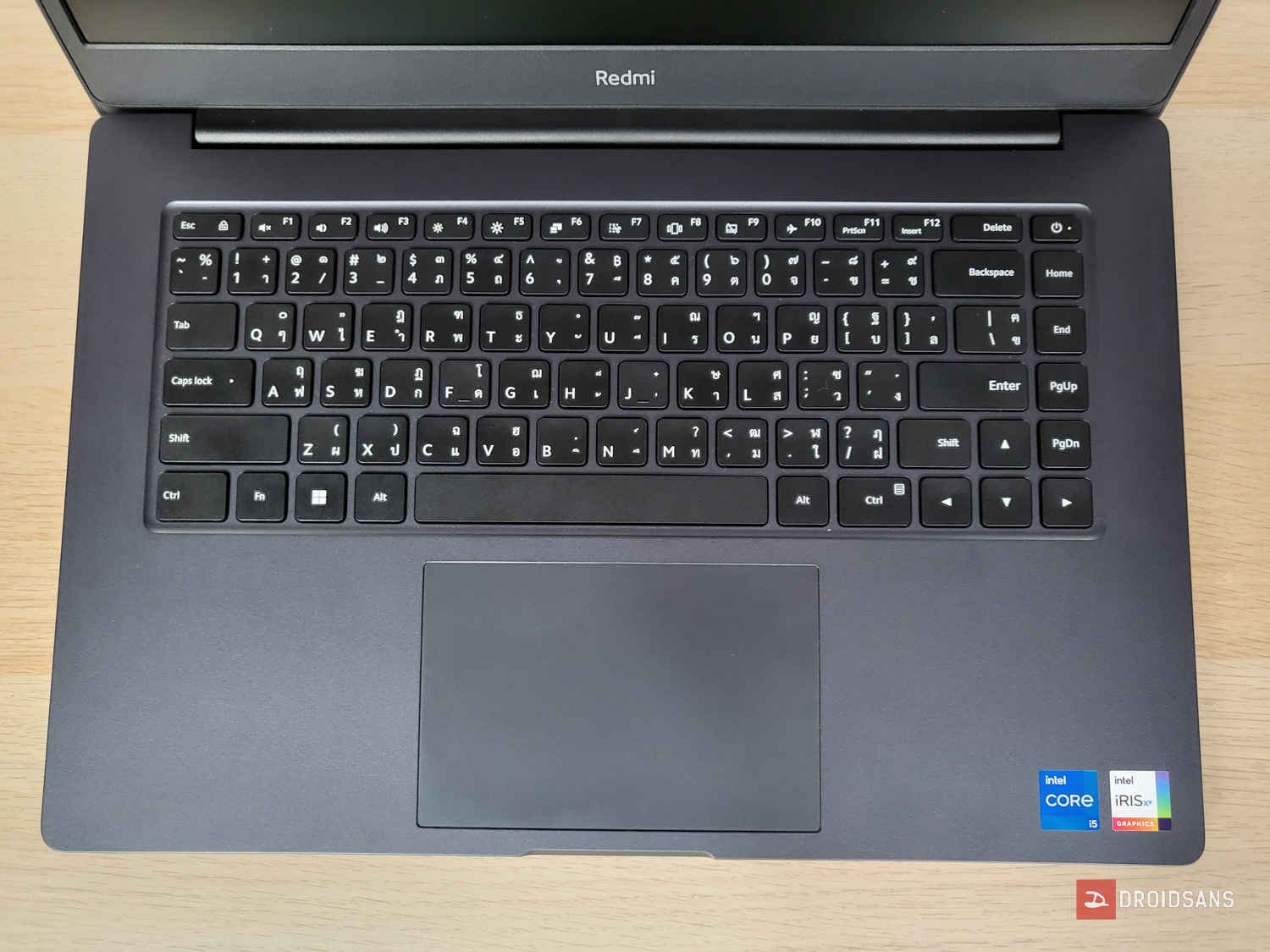 RedmiBook 15 ให้คีย์บอร์ดมาเป็นขนาดมาตรฐาน ไม่มีนัมเบอร์แพดพิมพ์เลขมาให้ แต่ก็แลกมากับขนาดปุ่มที่ค่อนข้างใหญ่ เว้นช่องระหว่างปุ่มให้ห่างกว่ารุ่นอื่น ซึ่งบอกเลยว่าพิมพ์ได้สะดวกขึ้น ฟีลลิ่งการกดก็ดีมากด้วยระยะกดปุ่ม (key travel) ที่ค่อนข้างลึก 1.5 มม. การตอบสนองก็ค่อนข้างมันส์ ๆ ปนนุ่ม ๆ พิมพ์งานได้ทั้งวันไม่มีเบื่อเลย