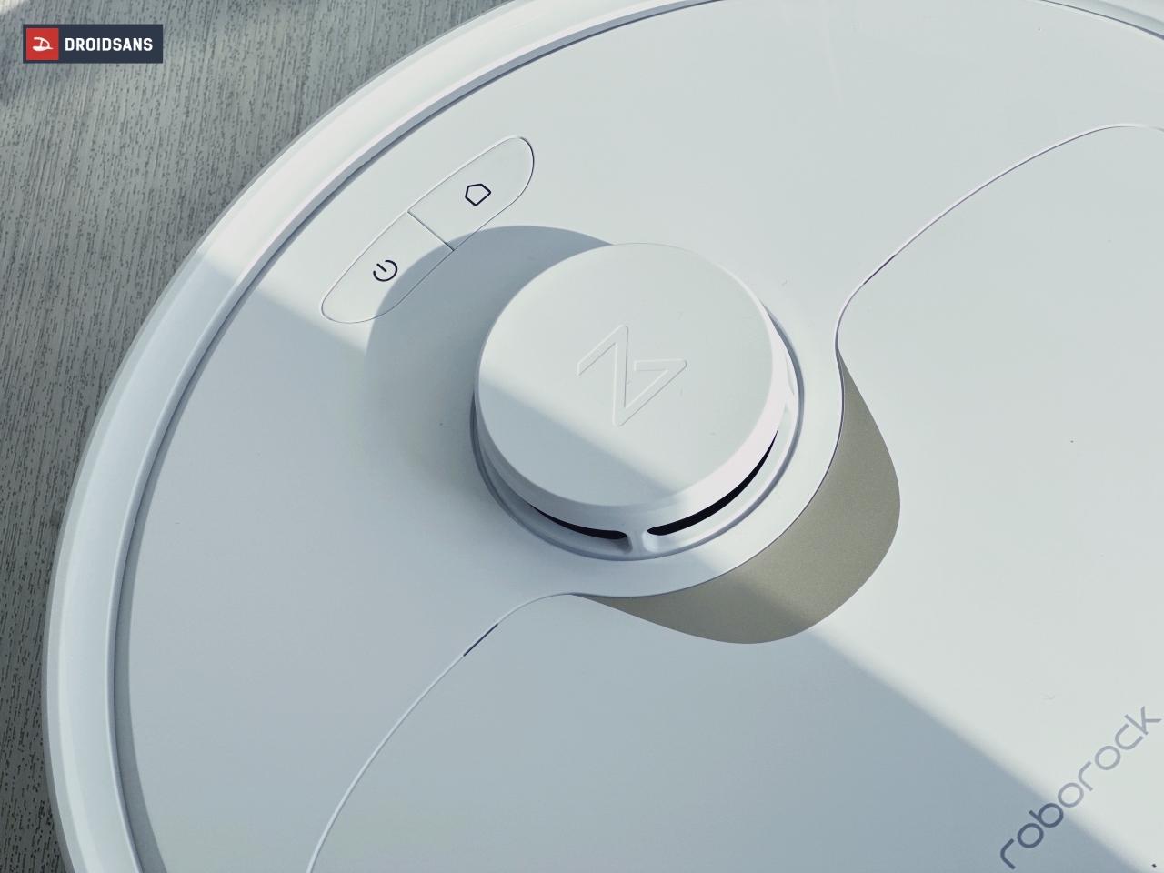 ส่วนตัวโรบอตนั้นด้านบนก็มากับวัสดุเงางามเช่นกัน โดยจะมีปุ่ม 2 ปุ่มเพื่อเปิด / ปิดการทำงานของโรบอต รวมถึงปุ่มรูปบ้านที่เมื่อกดแล้วจะเป็นสั่งให้โรบอตหยุดการทำงาน และกลับสถานีชาร์จ ส่วนที่นูนออกมาแน่นอนว่ายังเป็นเซนเซอร์ PreciSense LiDAR เพื่อสแกนพื้นที่ และตรวจจับสิ่งกีดขวางต่าง ๆ